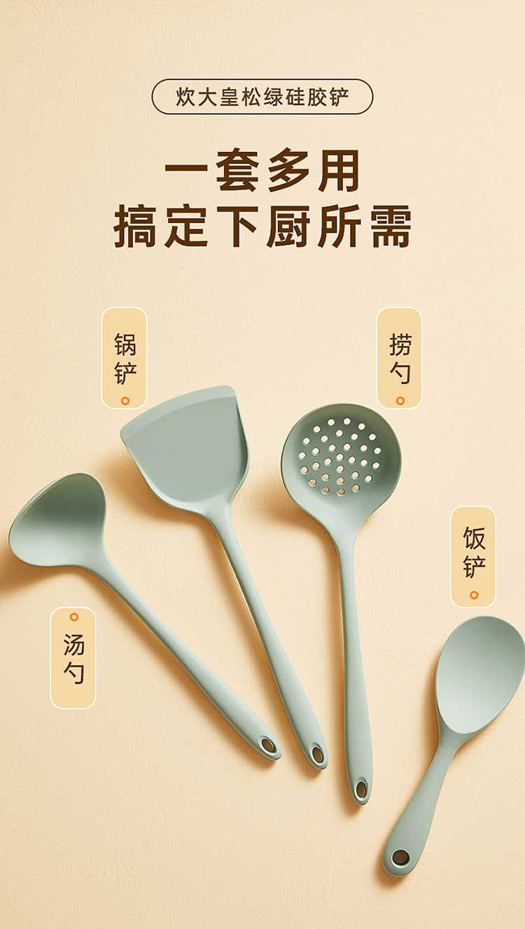 炊大皇 松绿硅胶小锅铲/汤勺/捞勺铲SL05GJ