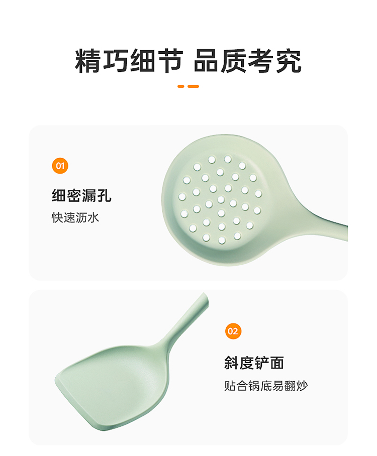 4、外层柔软护锅内芯强硬耐用柔软硅胶,搭配高强度尼龙,让好铲更耐用
