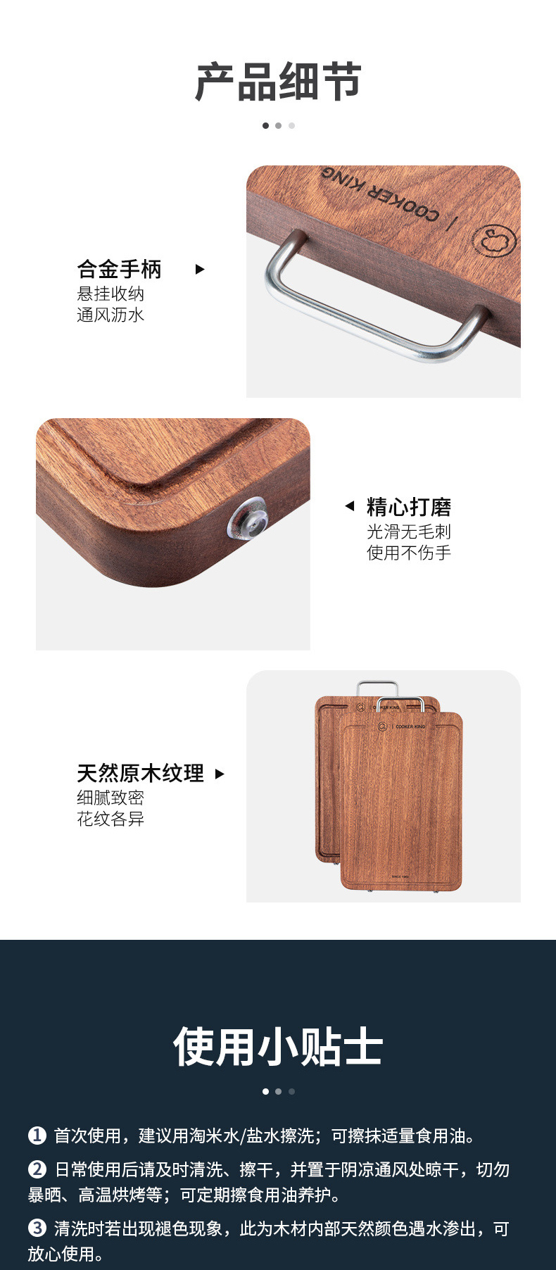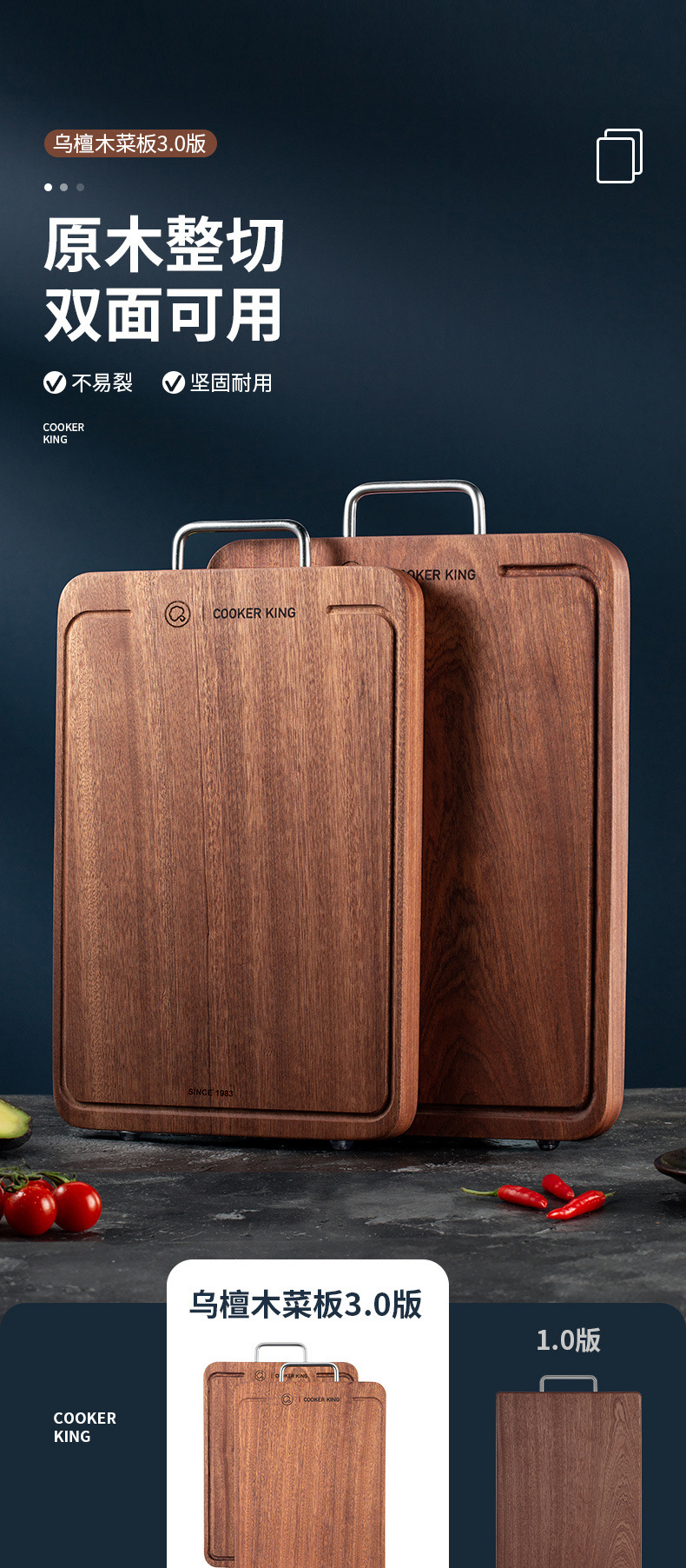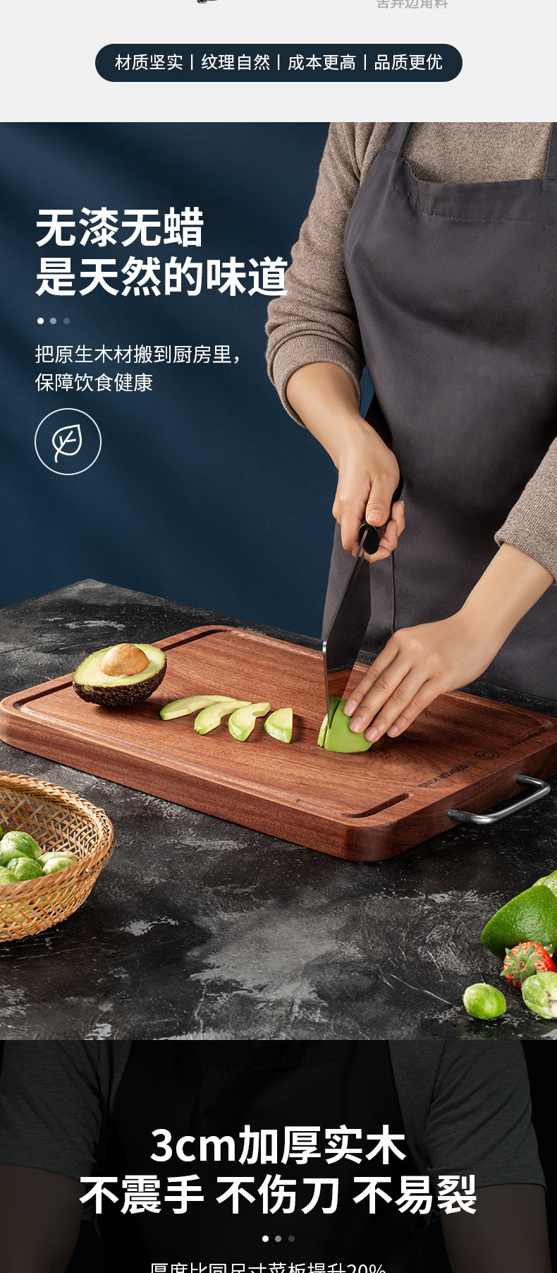 3、3cm加厚实木不震手 不伤刀 不易裂