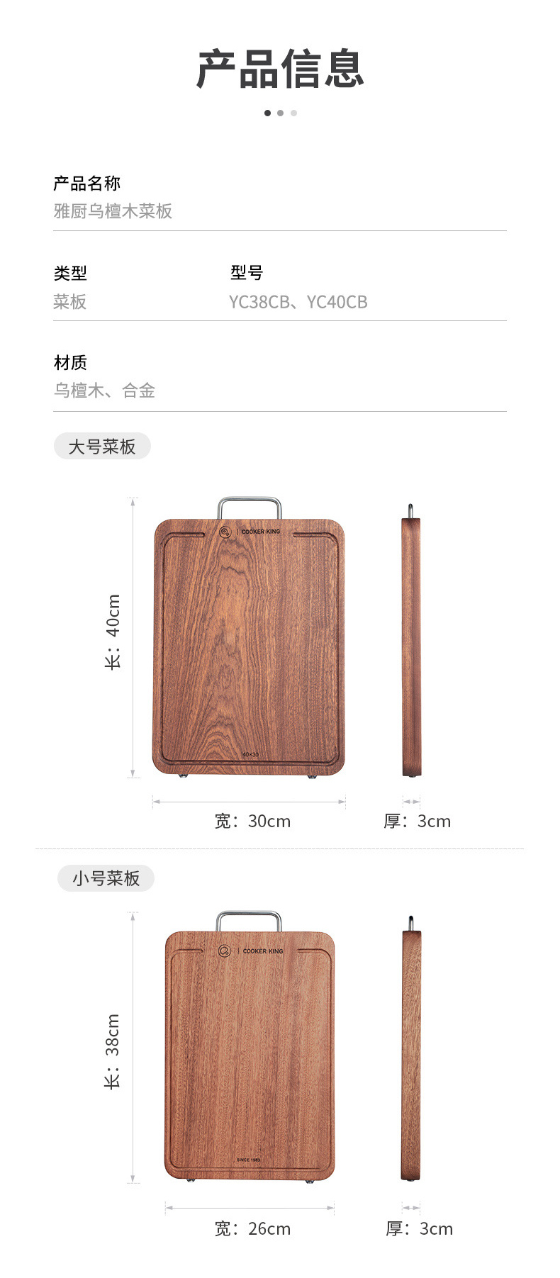 炊大皇雅厨乌檀木菜板38CMYC38CB