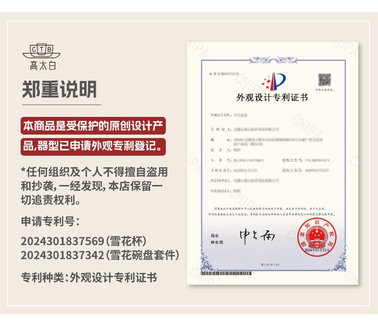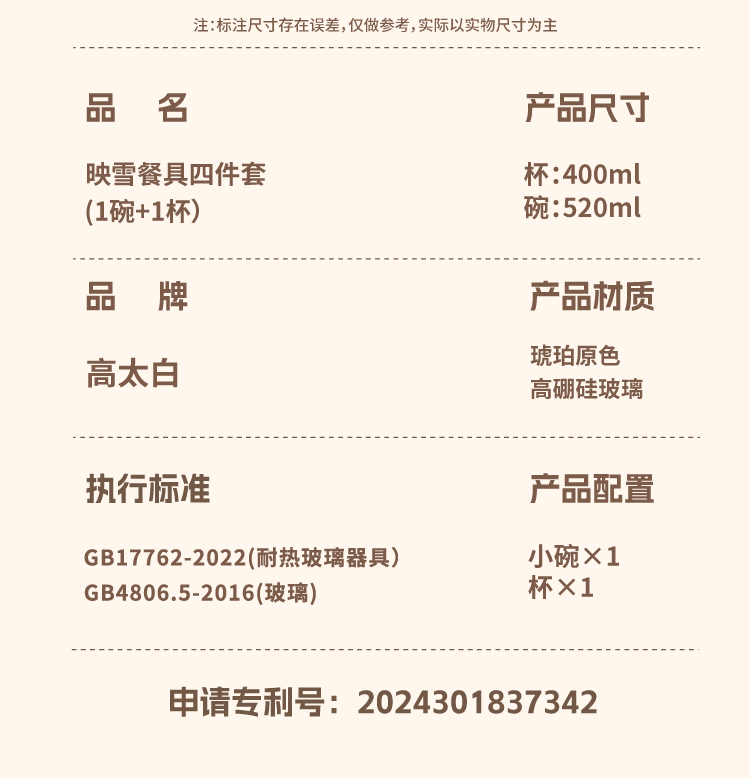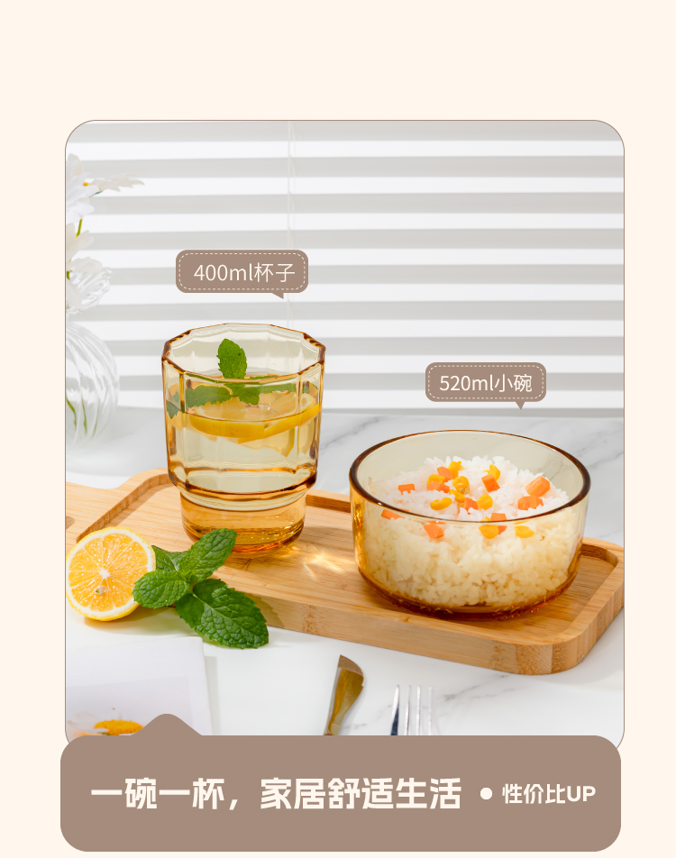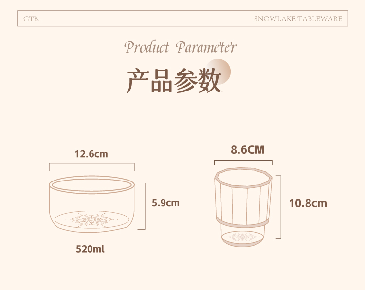 高太白映雪餐具2件套(396ml雪花杯*1+5寸映雪小碗*1)GCJ102
