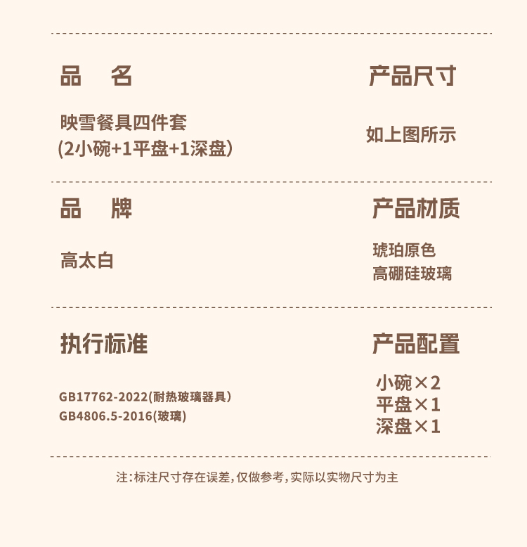 高太白映雪餐具4件套(碗*2+深盘*1+平盘*1)GCJ114