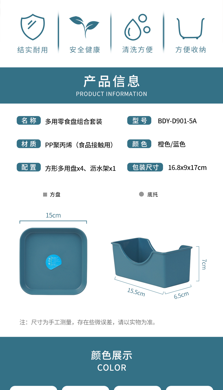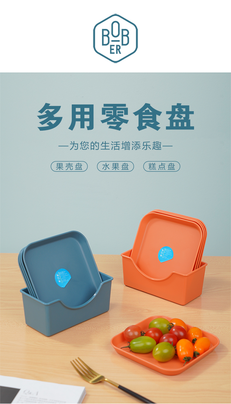 博堡 多用零食盘组合套装 BDY-D901-5A 水果盘零食碟子糖果盘骨碟瓜子盘家用餐桌点心盘 橙色