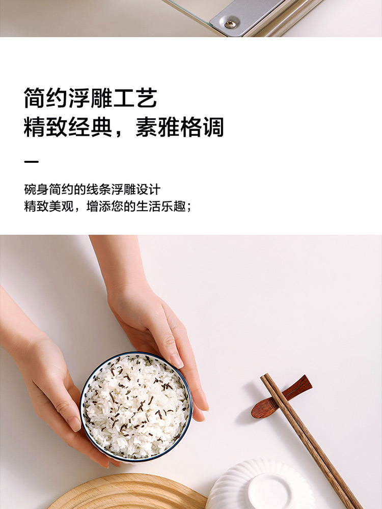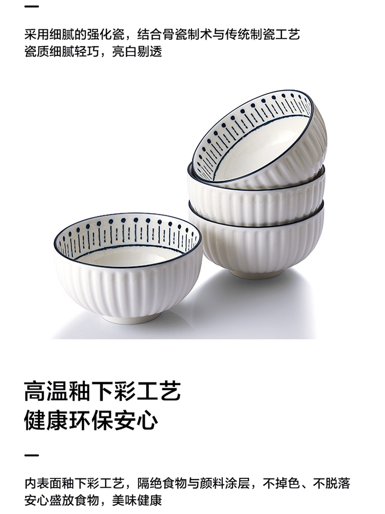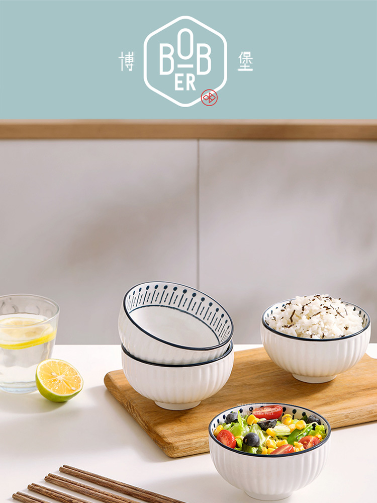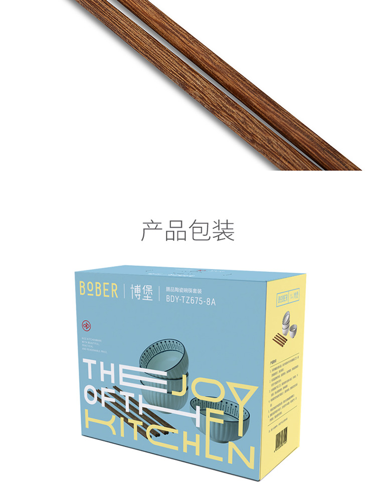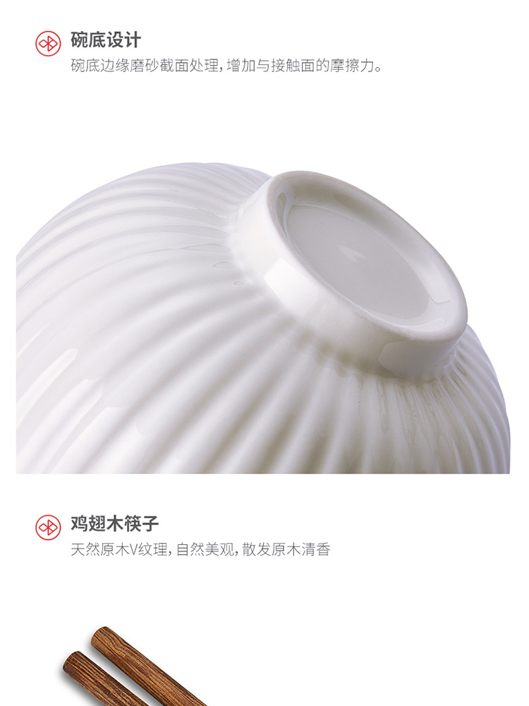 博堡 膳品陶瓷碗筷套装BDY-TZ675-8A-YG【4碗4筷】 白色