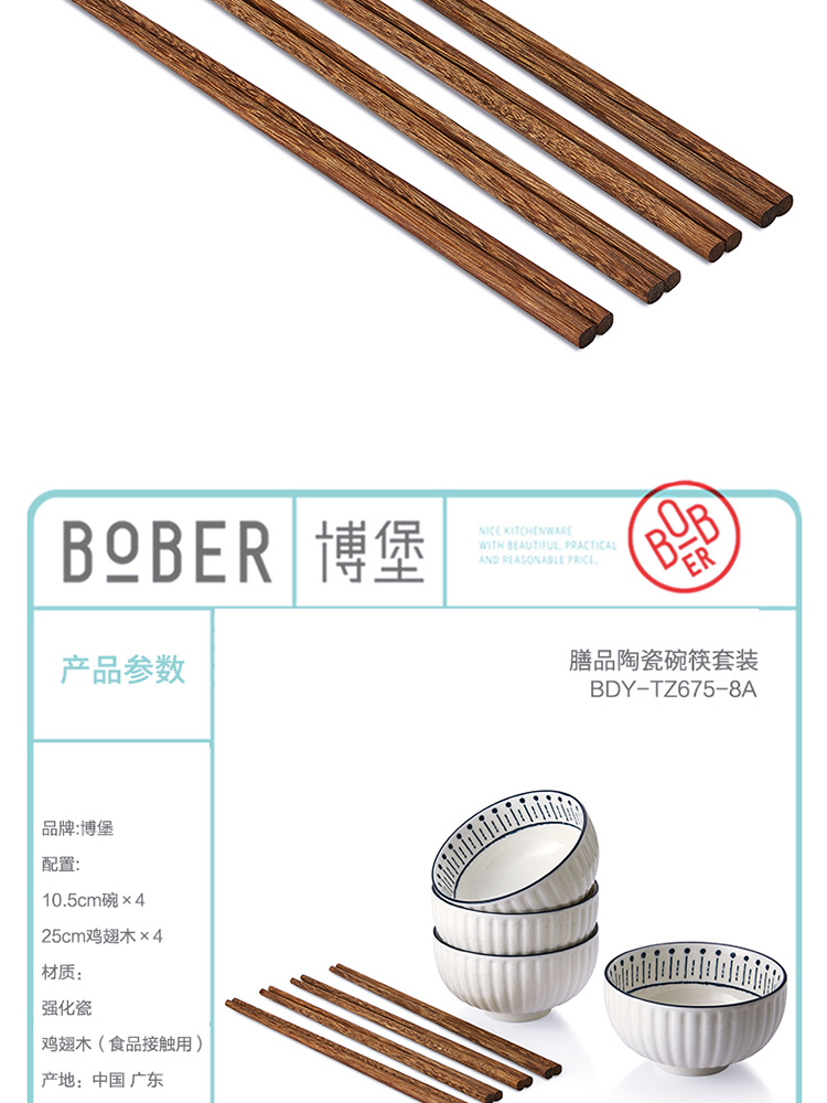 产品材质:强化瓷、鸡翅木(食品接触用)