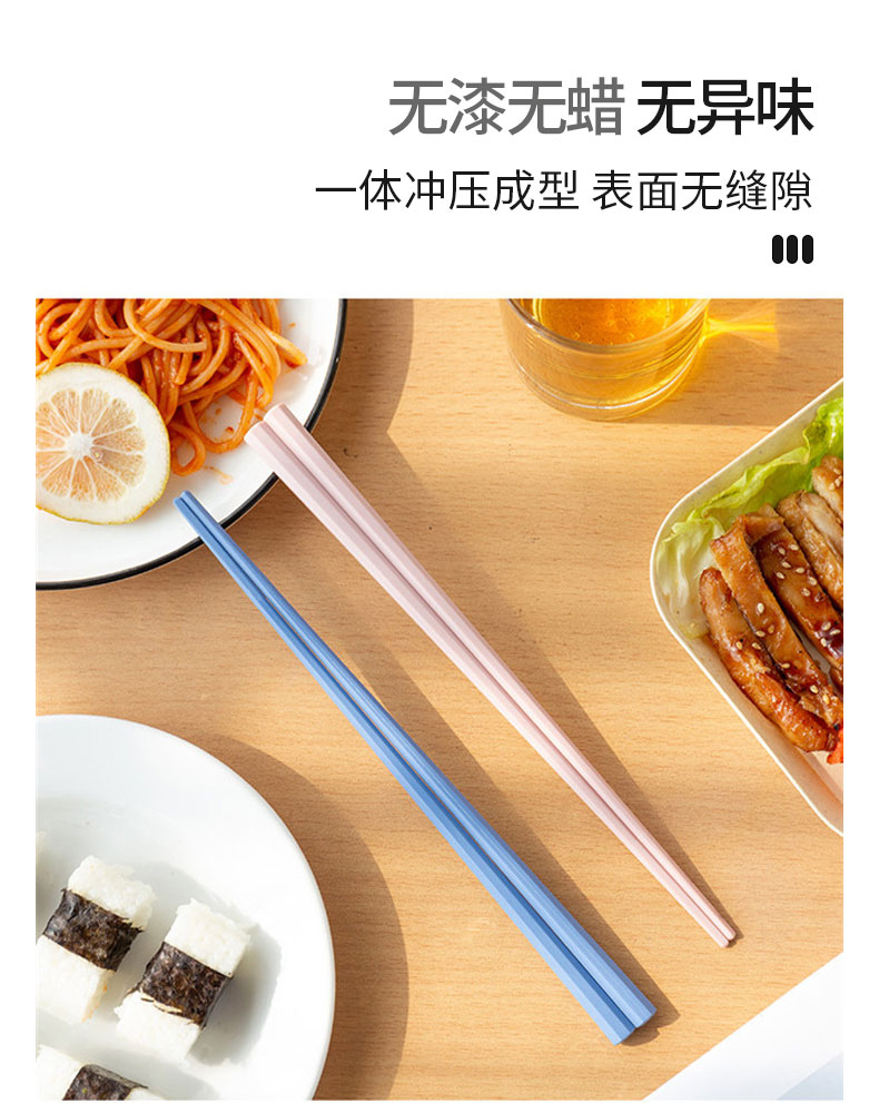 筷身表面平整,不易吸附油污,美观好用清洗便捷。