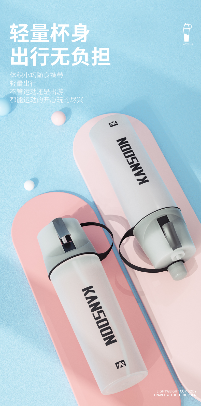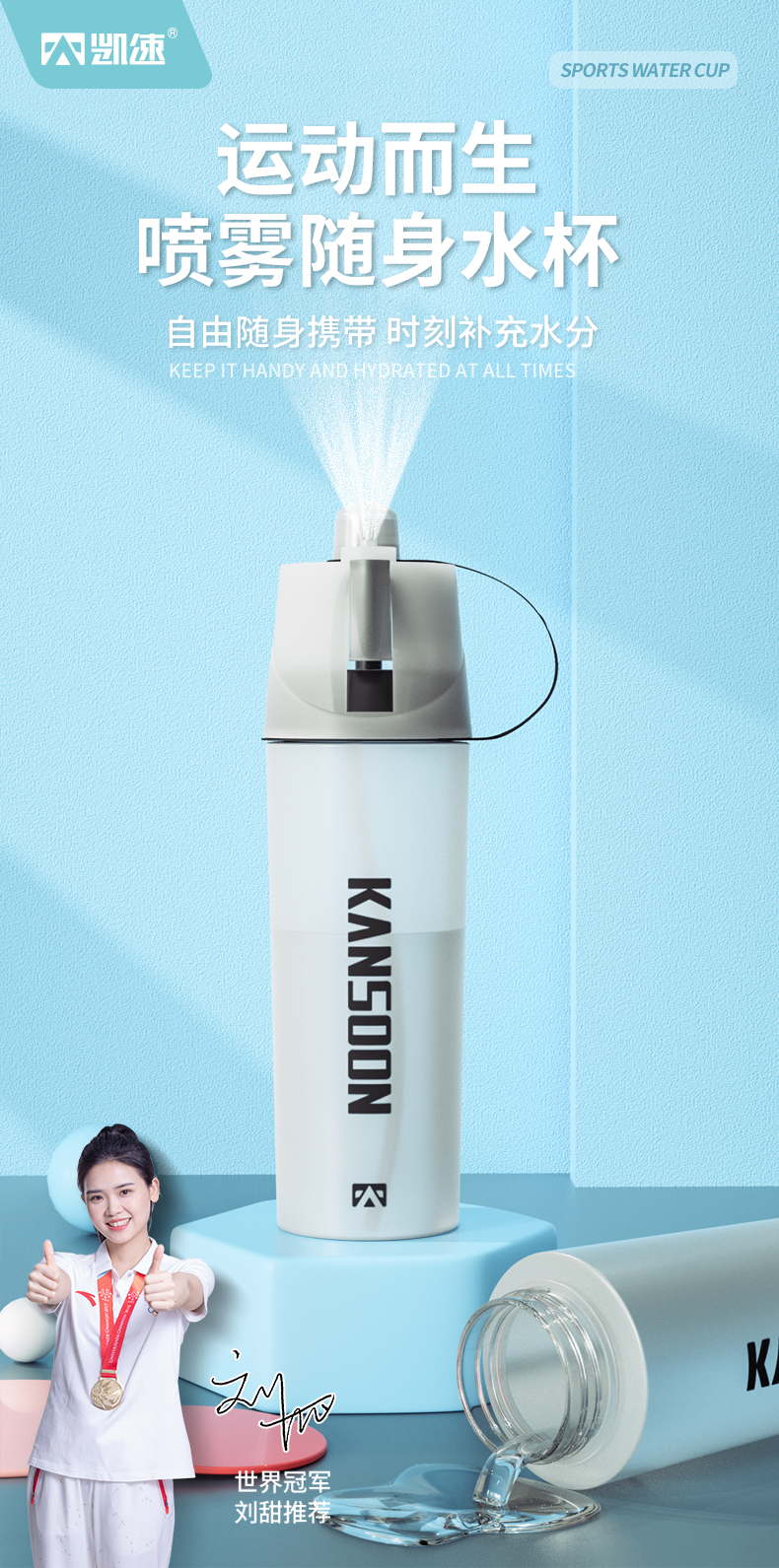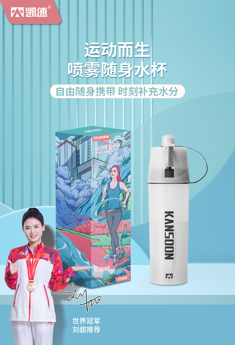 凯速便携大容量喷雾运动水杯灰色-600ml NB09