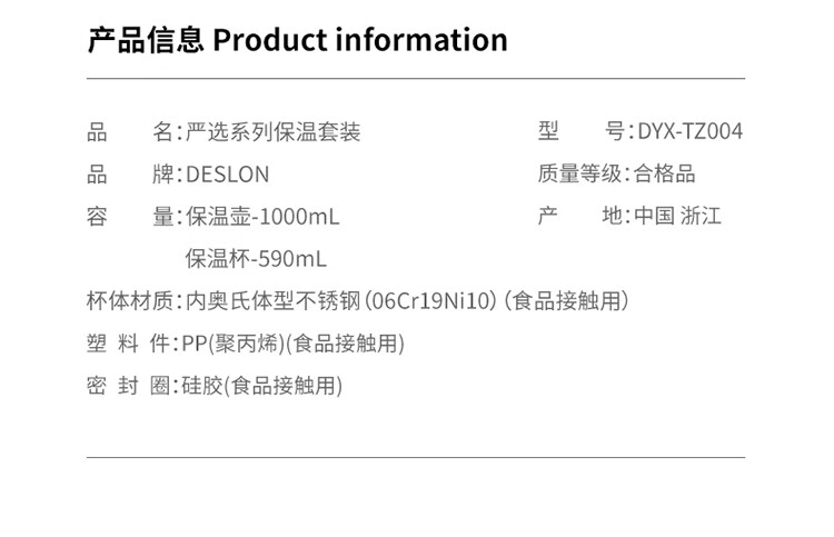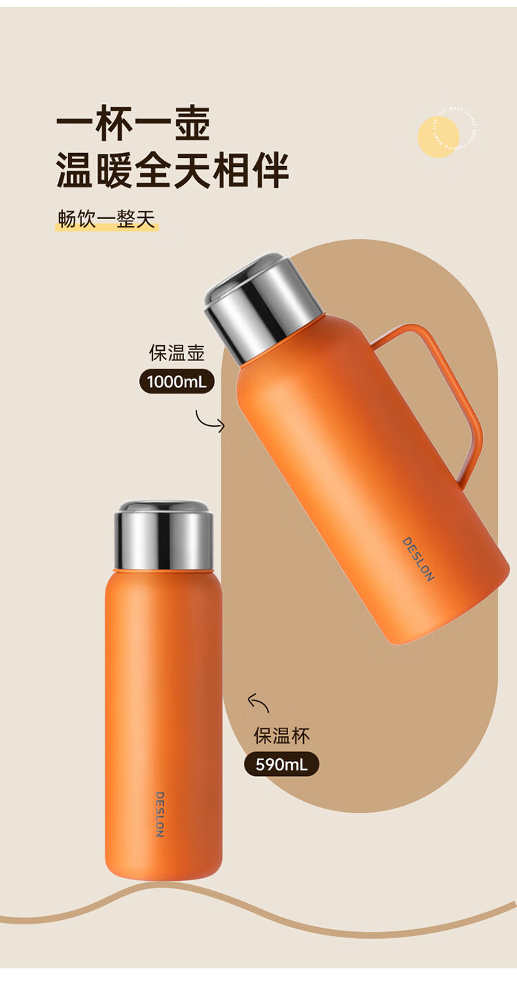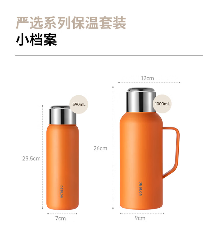 产品容量:保温壶-1000mL, 保温杯-590mL