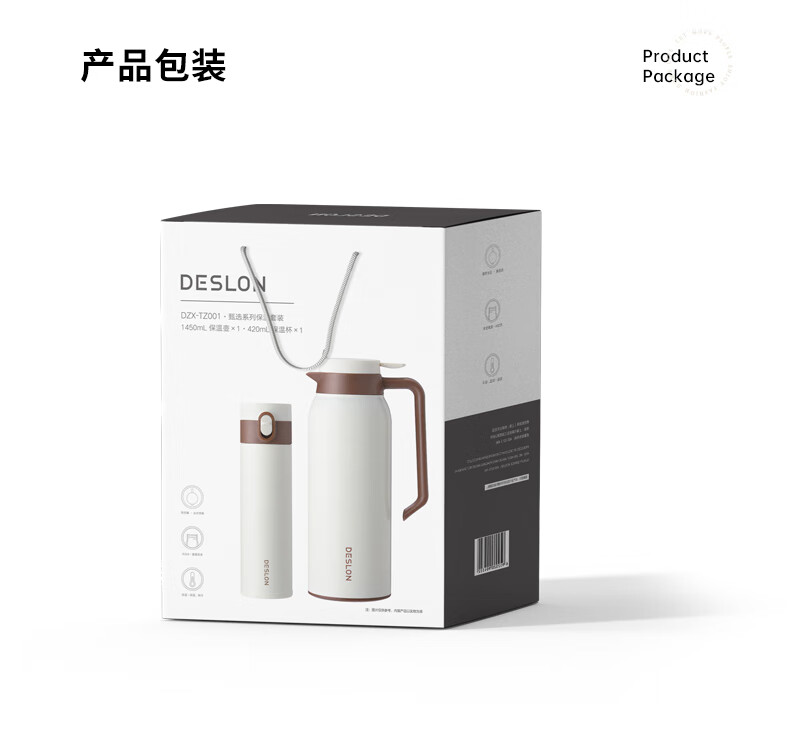 德世朗甄选系列保温套装 保温壶-1450mL 保温杯-420mL 白色 DZX-TZ001
