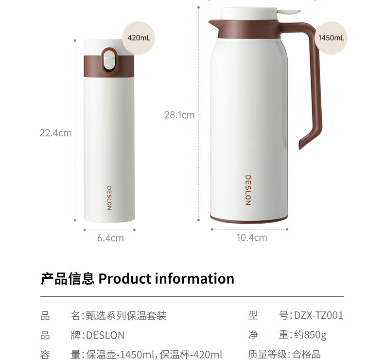 产品容量:保温壶-1450mL, 保温杯-420mL