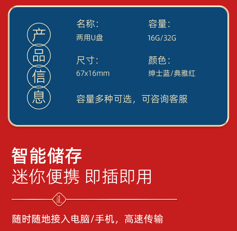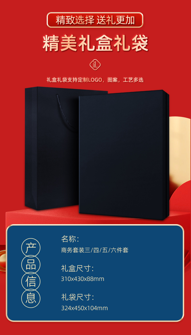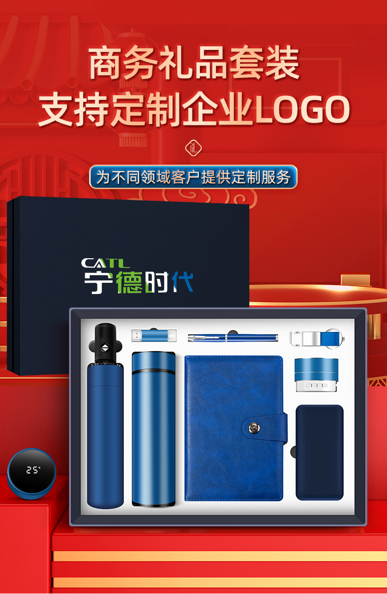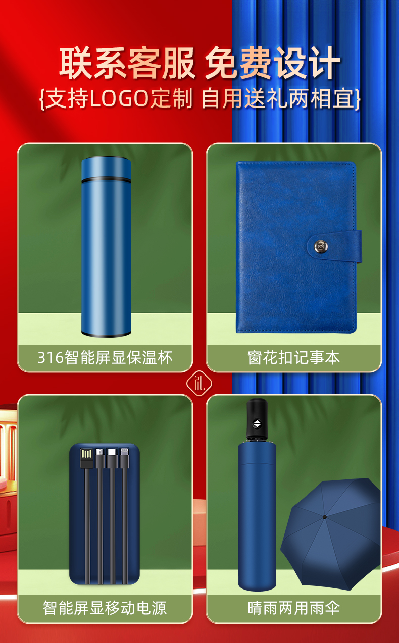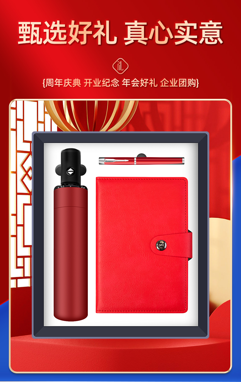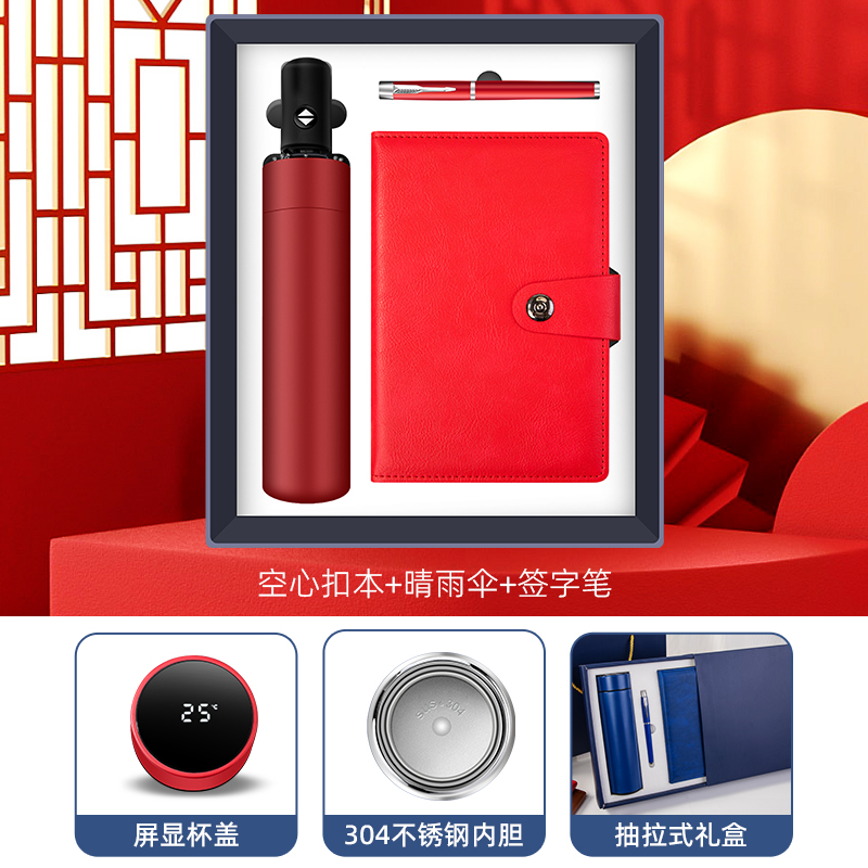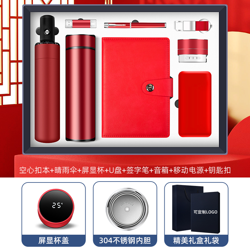 A5空心扣本自动八骨伞圆笔450ML数显杯音响32G手机U盘钥匙扣四线电源八件套红色配6号蓝盒TGC1037