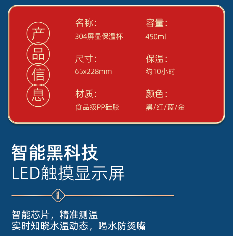 A5空心扣本450ML数显杯两件套红色配折盒2号纯蓝TGC0832