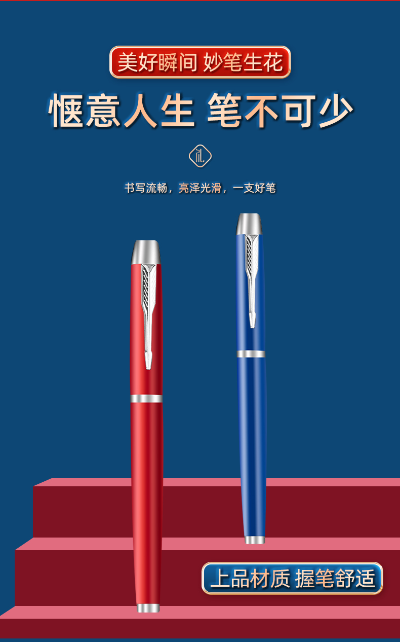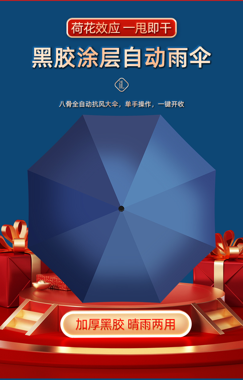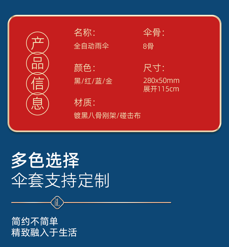 A5空心扣本自动八骨伞圆笔三件套红色配折盒2号纯蓝TGC1033