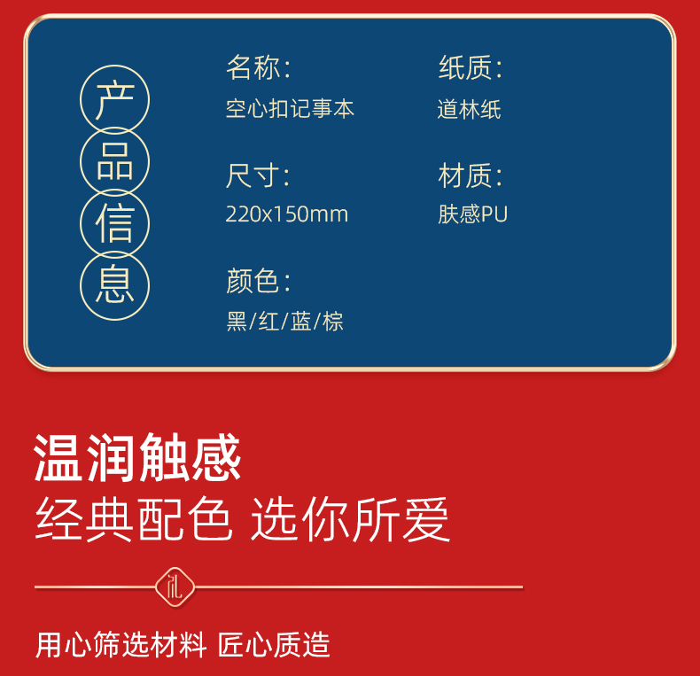 A5空心扣本笔芯圆笔三件套红色配23D蓝盒TGC0833