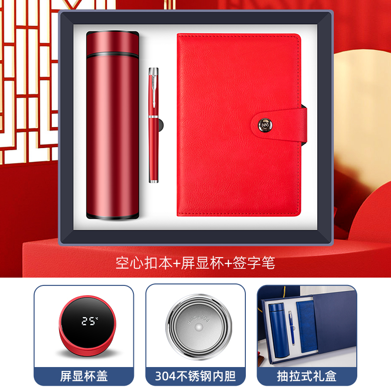A5空心扣本450ML数显杯圆笔三件套红色配折盒2号纯蓝TGC0933