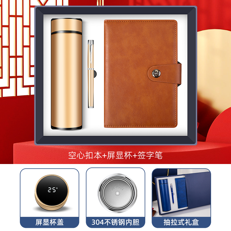 A5空心扣本450ML数显杯圆笔三件套金色配折盒2号纯蓝TGC0953