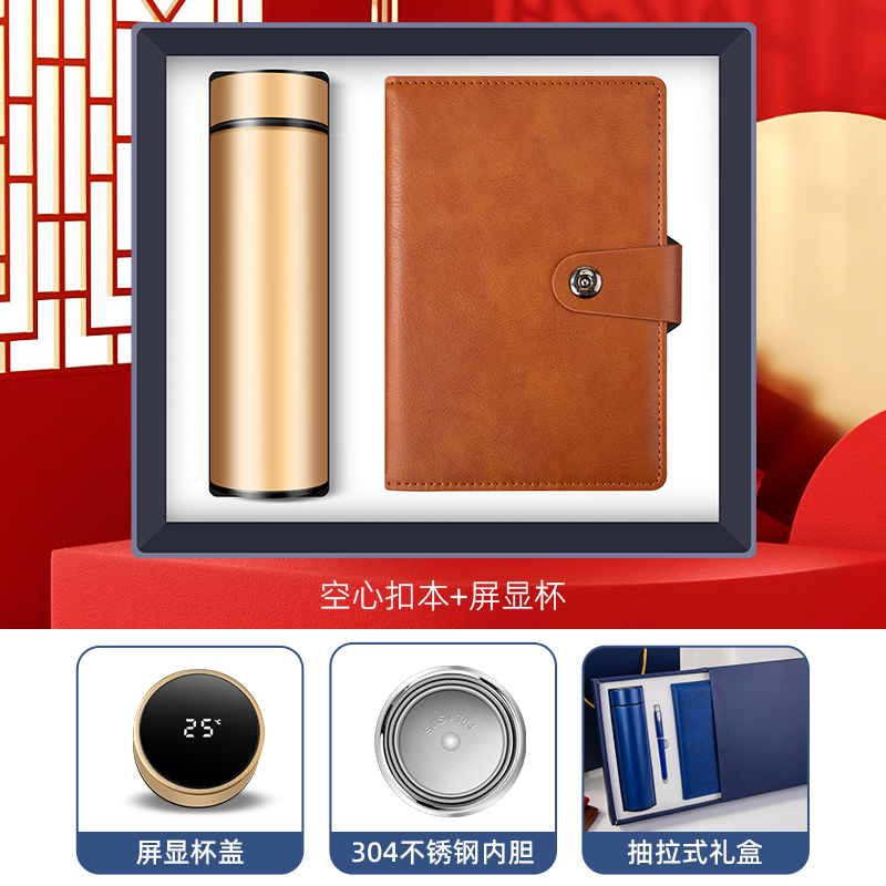 A5空心扣本450ML数显杯两件套金色配折盒2号纯蓝TGC0852