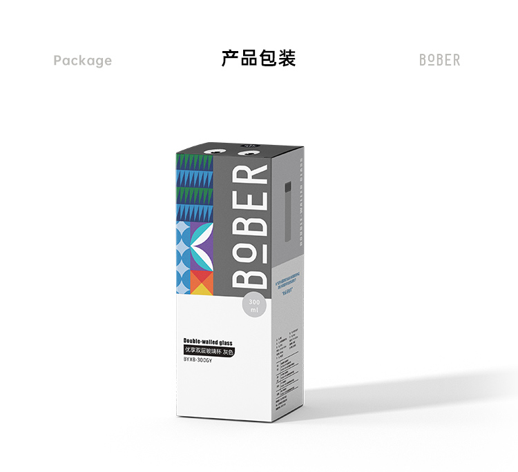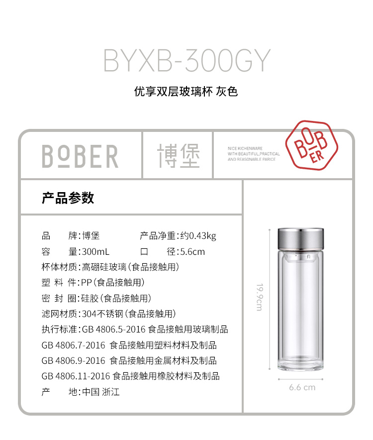 博堡优享双层玻璃杯BYXB-300GY 灰色 300ml 1只