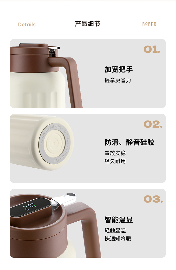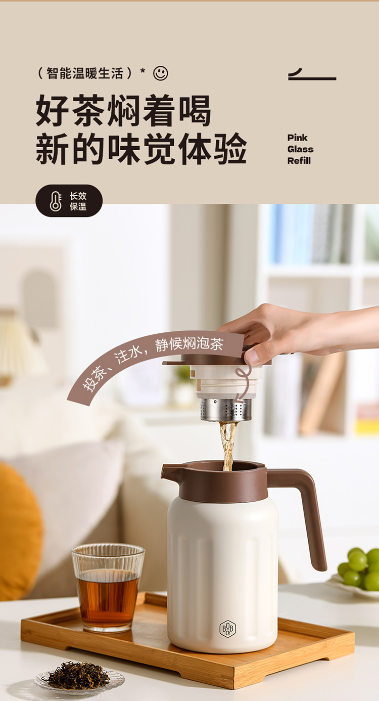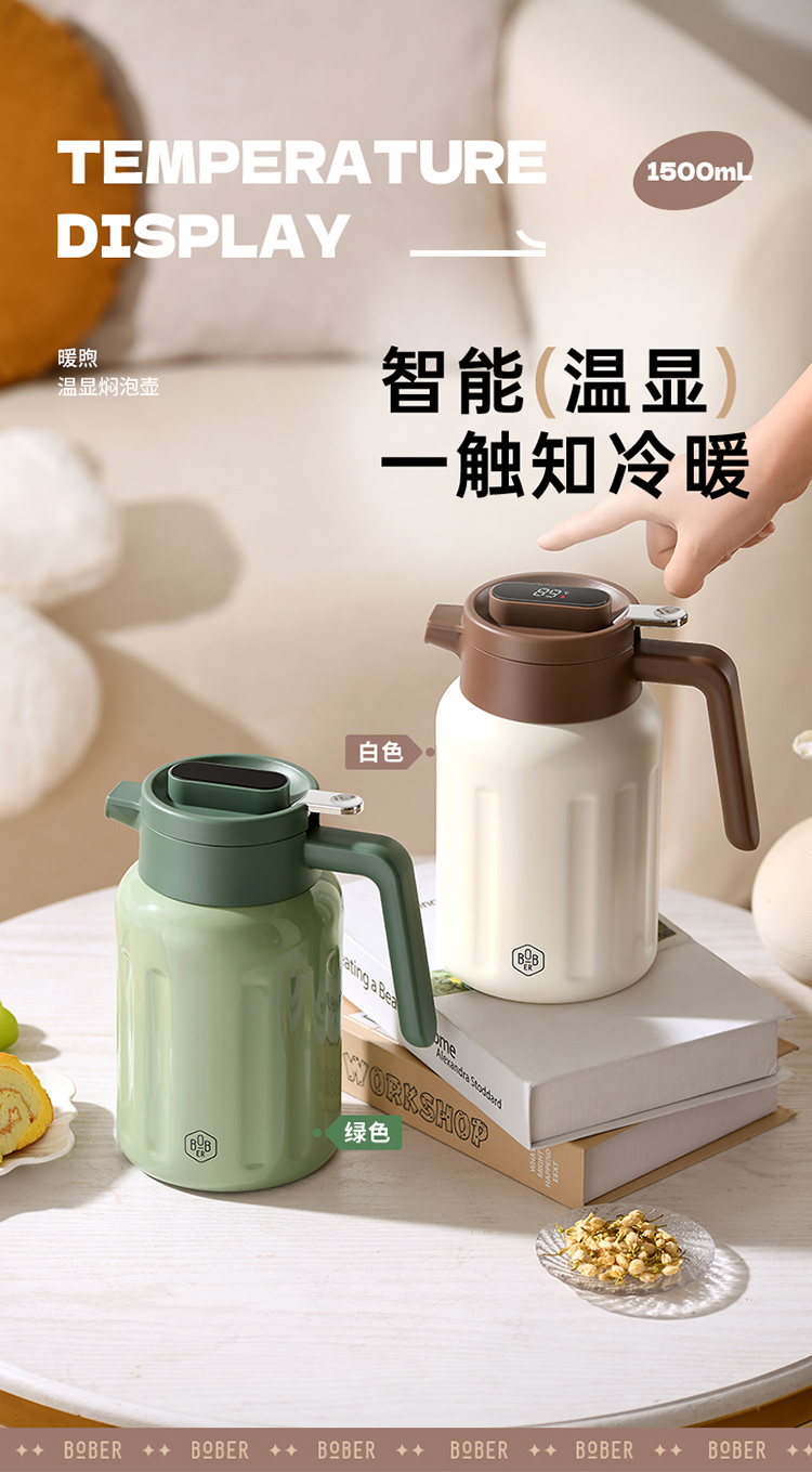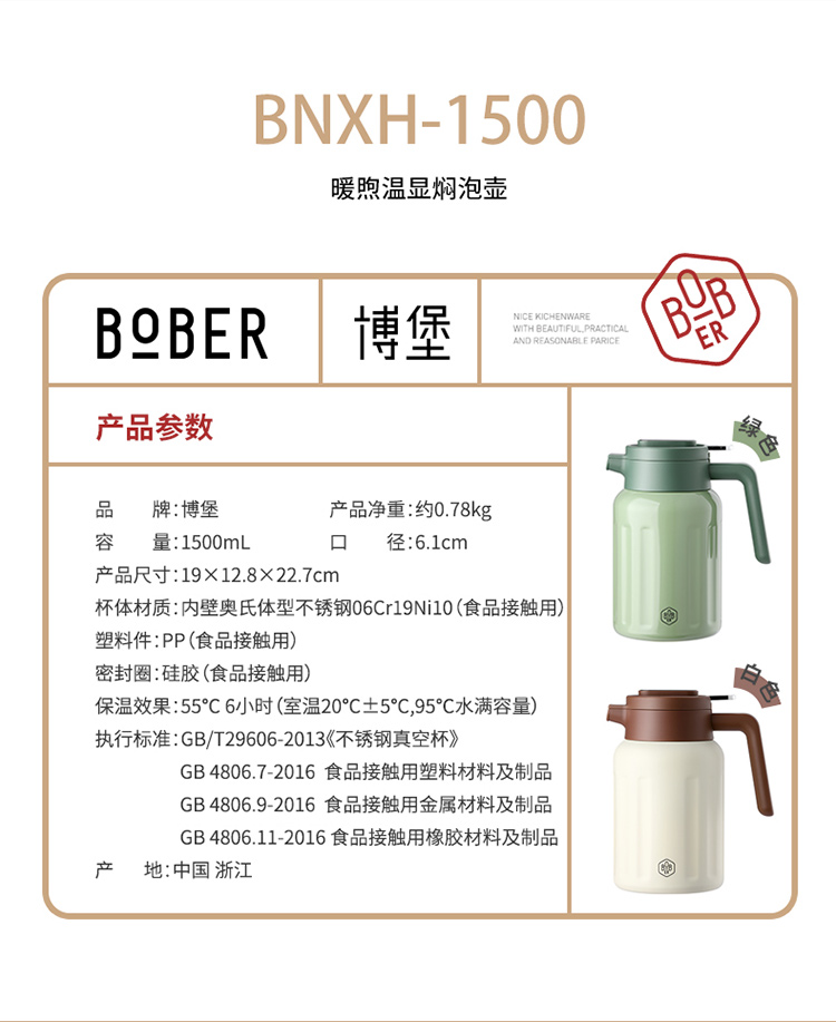 博堡暖煦温显焖泡壶保温壶 绿色 白色 BNXH-1500 1.5L