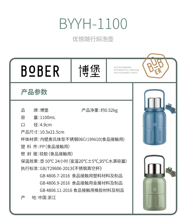 博堡优悦随行焖泡壶 绿色 蓝色 1.1L 10404BYYH-1100