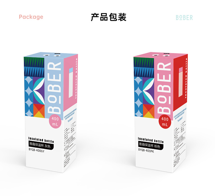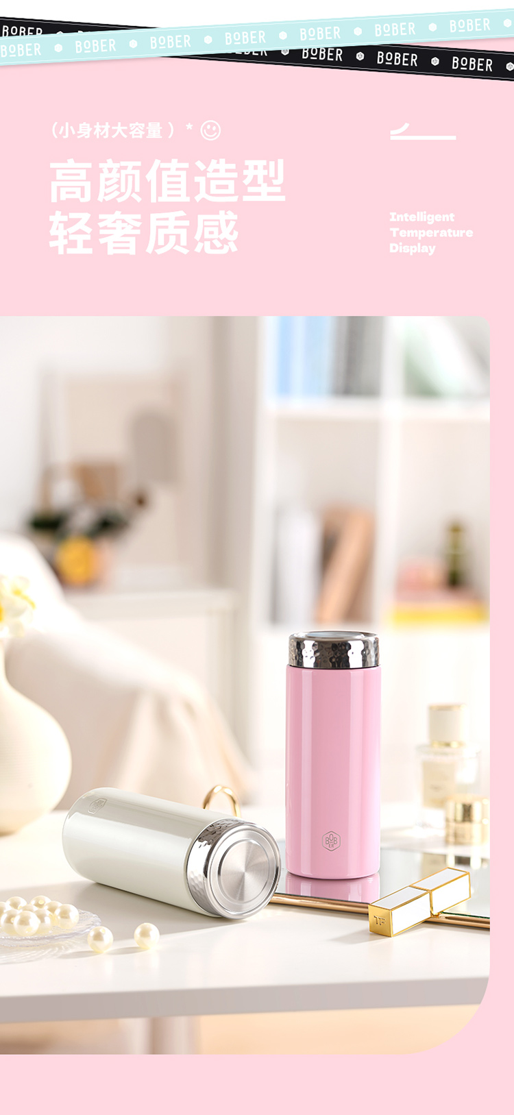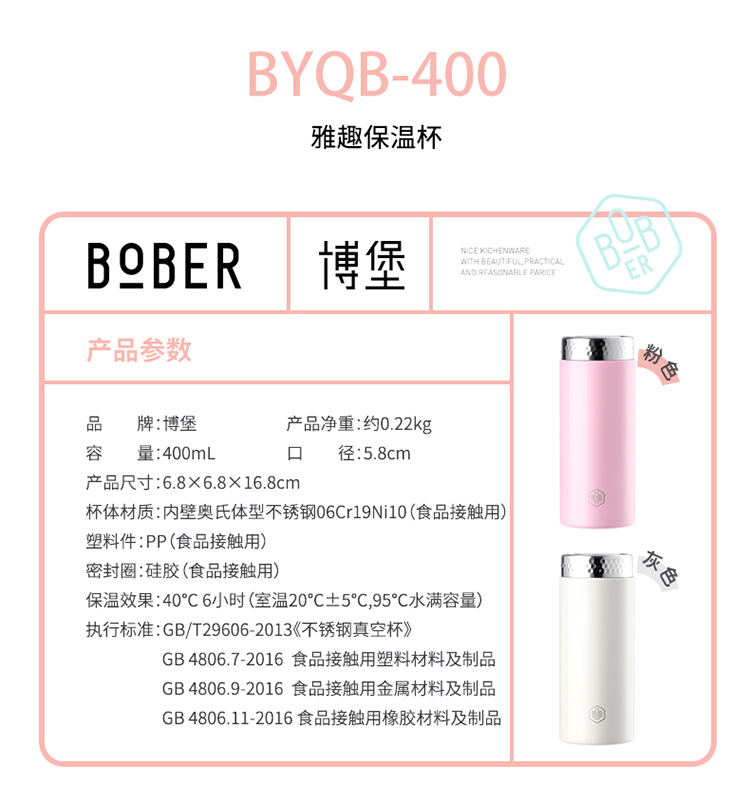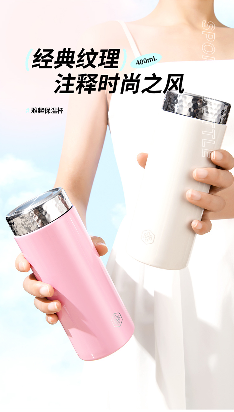 博堡雅趣保温杯 粉色 灰色 400ml 10404BYQB-400