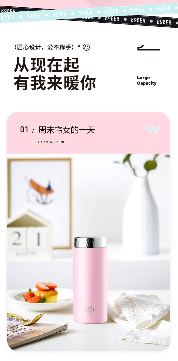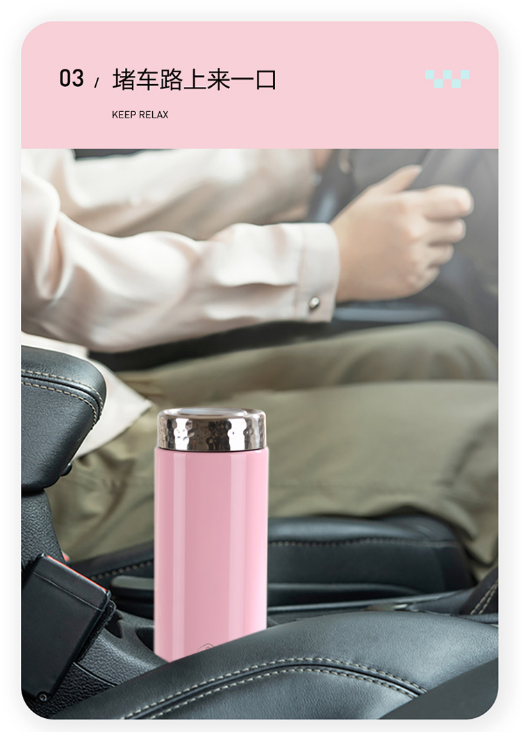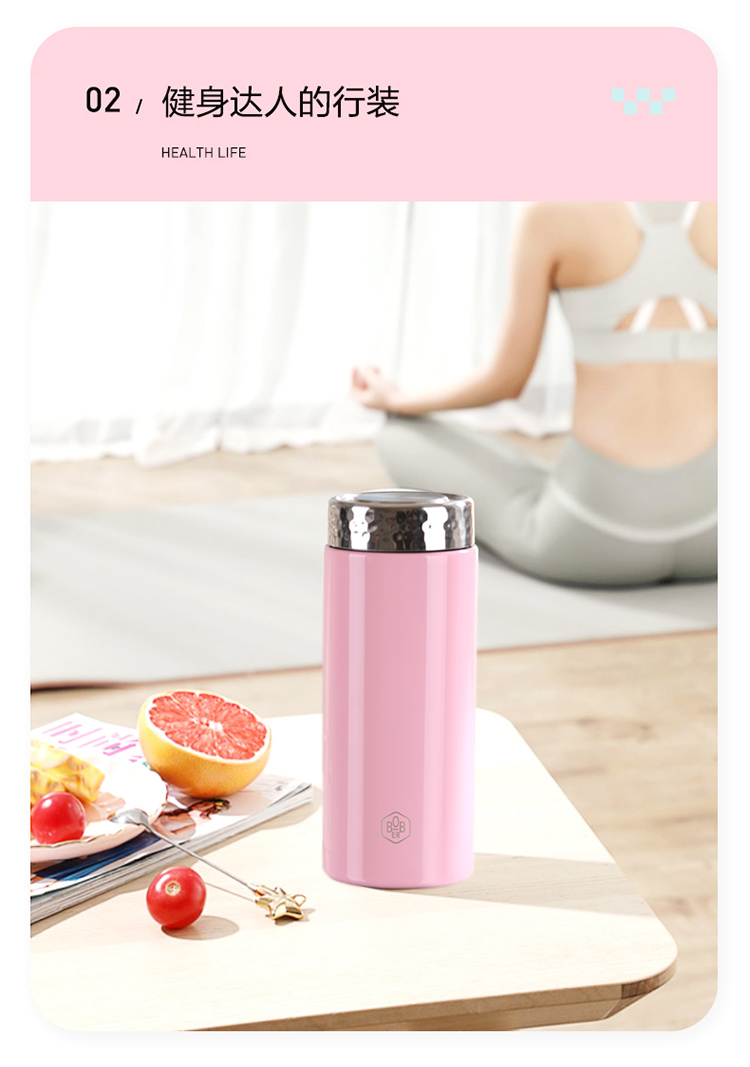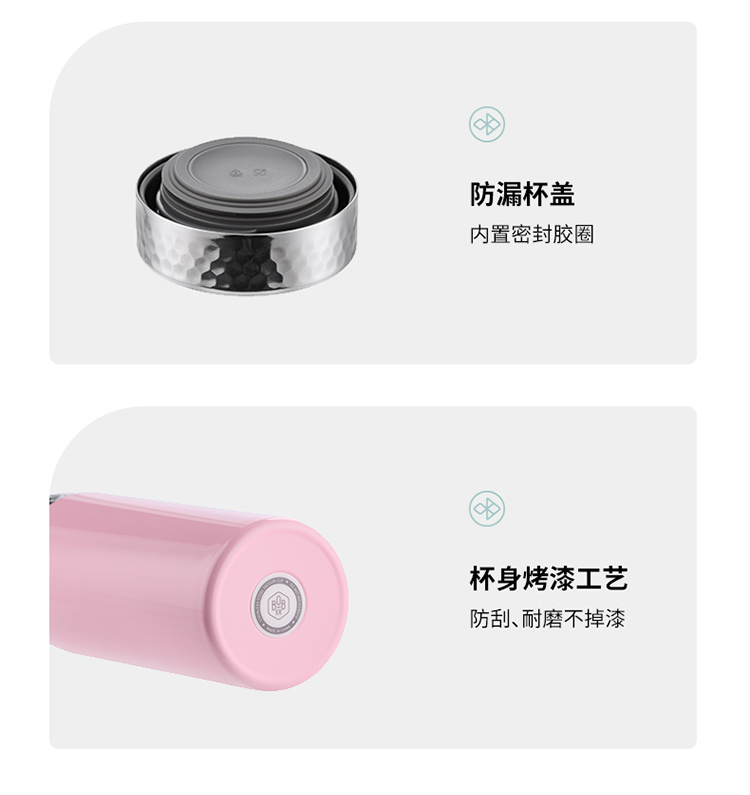 博堡雅趣保温杯 粉色 灰色 400ml 10404BYQB-400