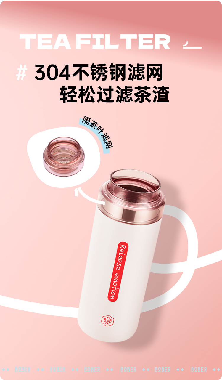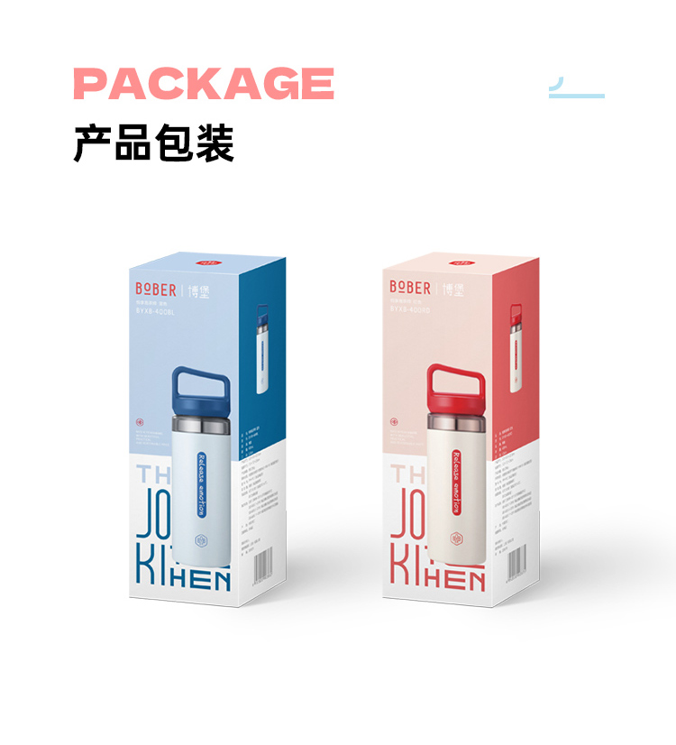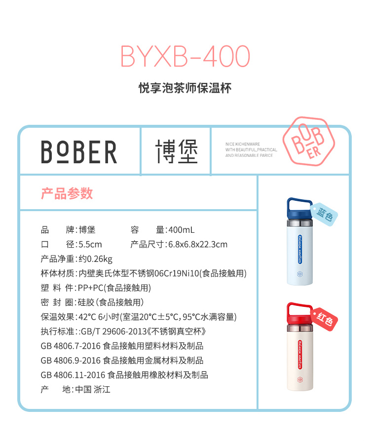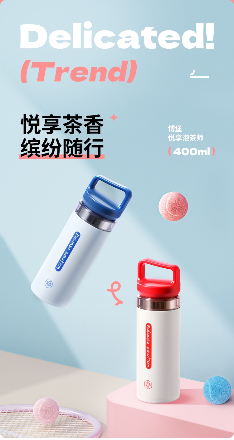 博堡悦享泡茶师 保温杯便携高颜值不锈钢杯子BYXB-400 RD/BL 红色/蓝色 400ml