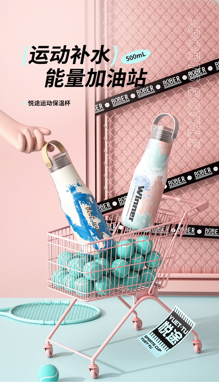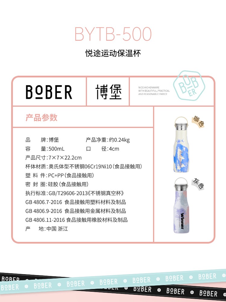 博堡 悦途运动保温杯 灰色/咖色 500ml 10404BYTB-500