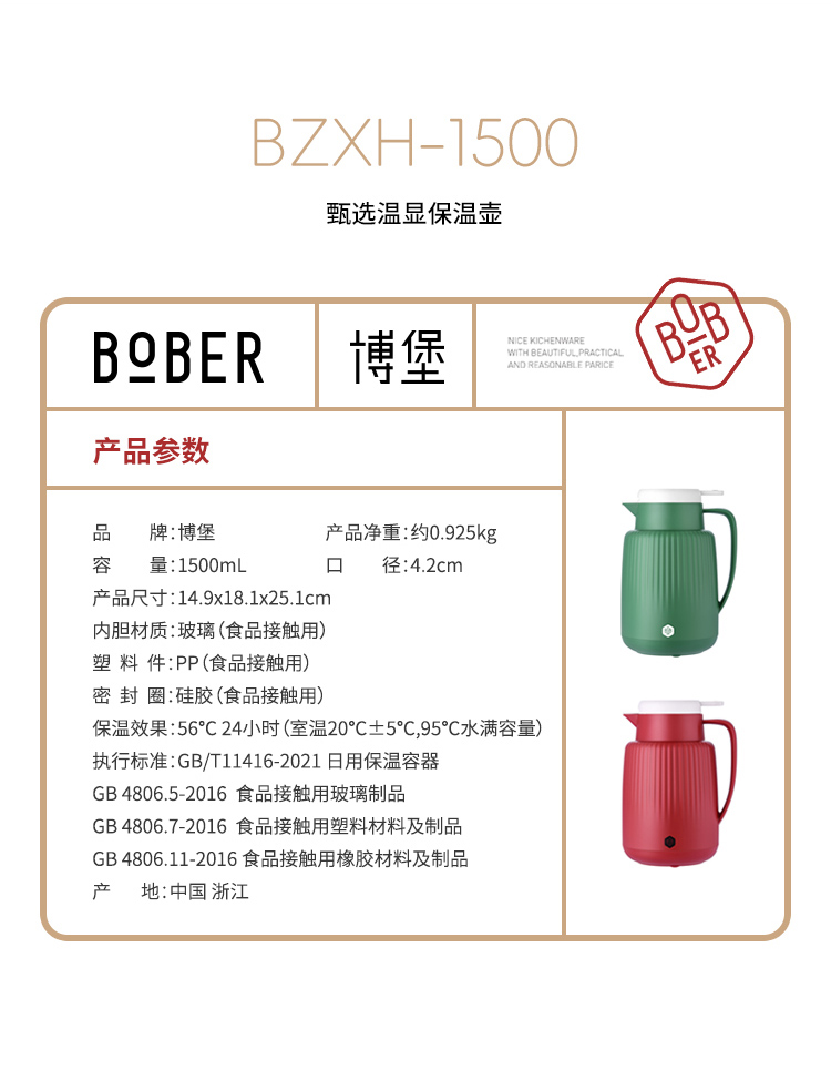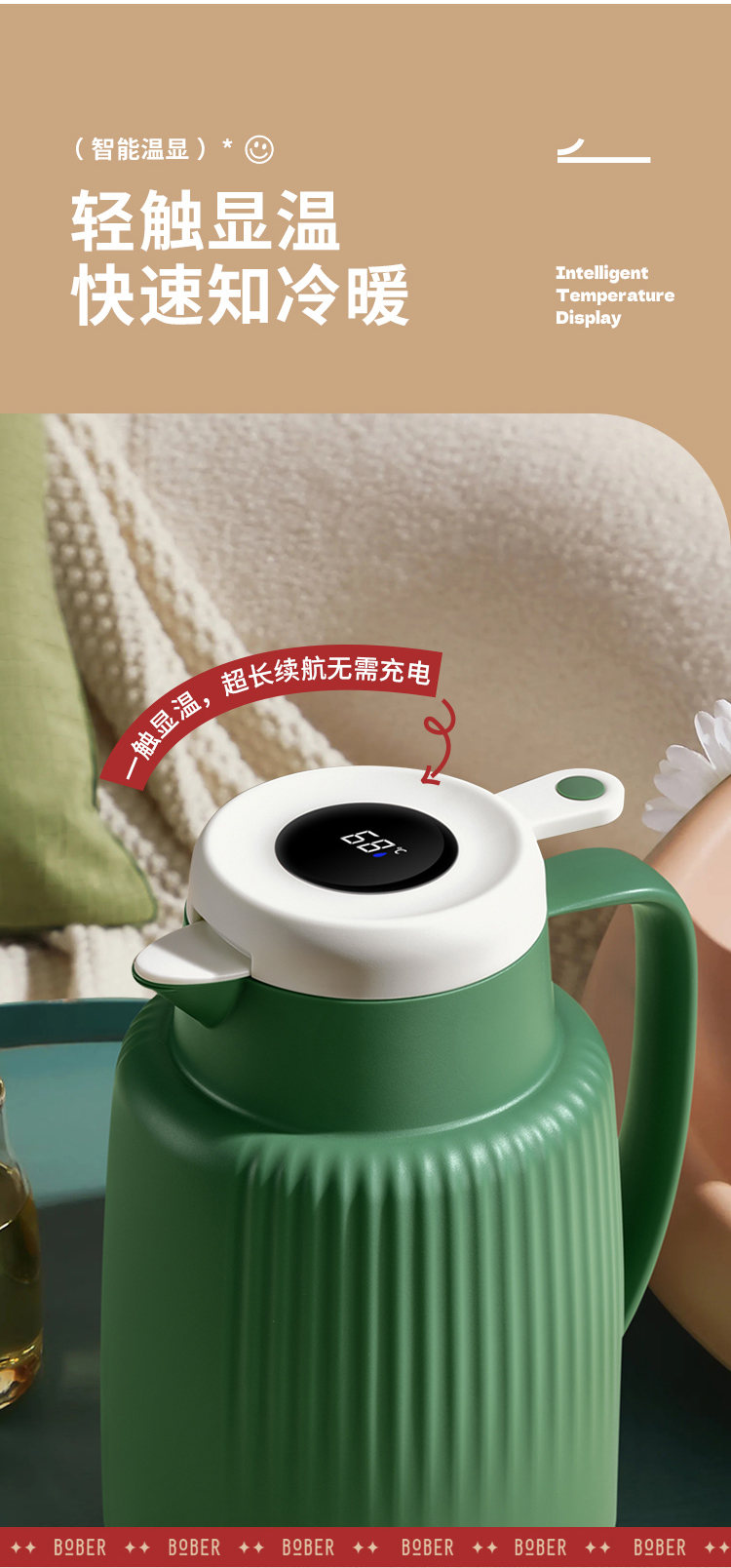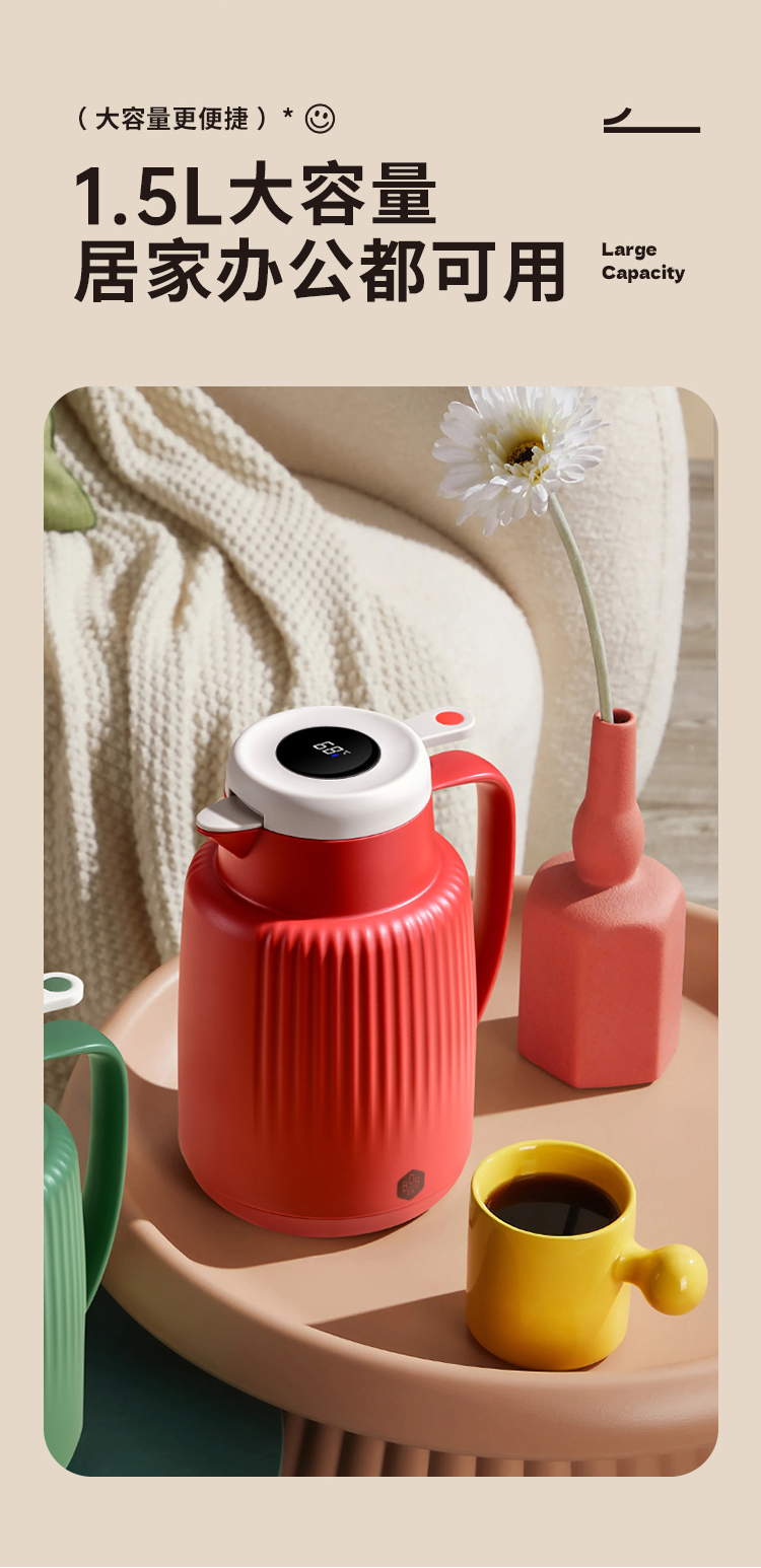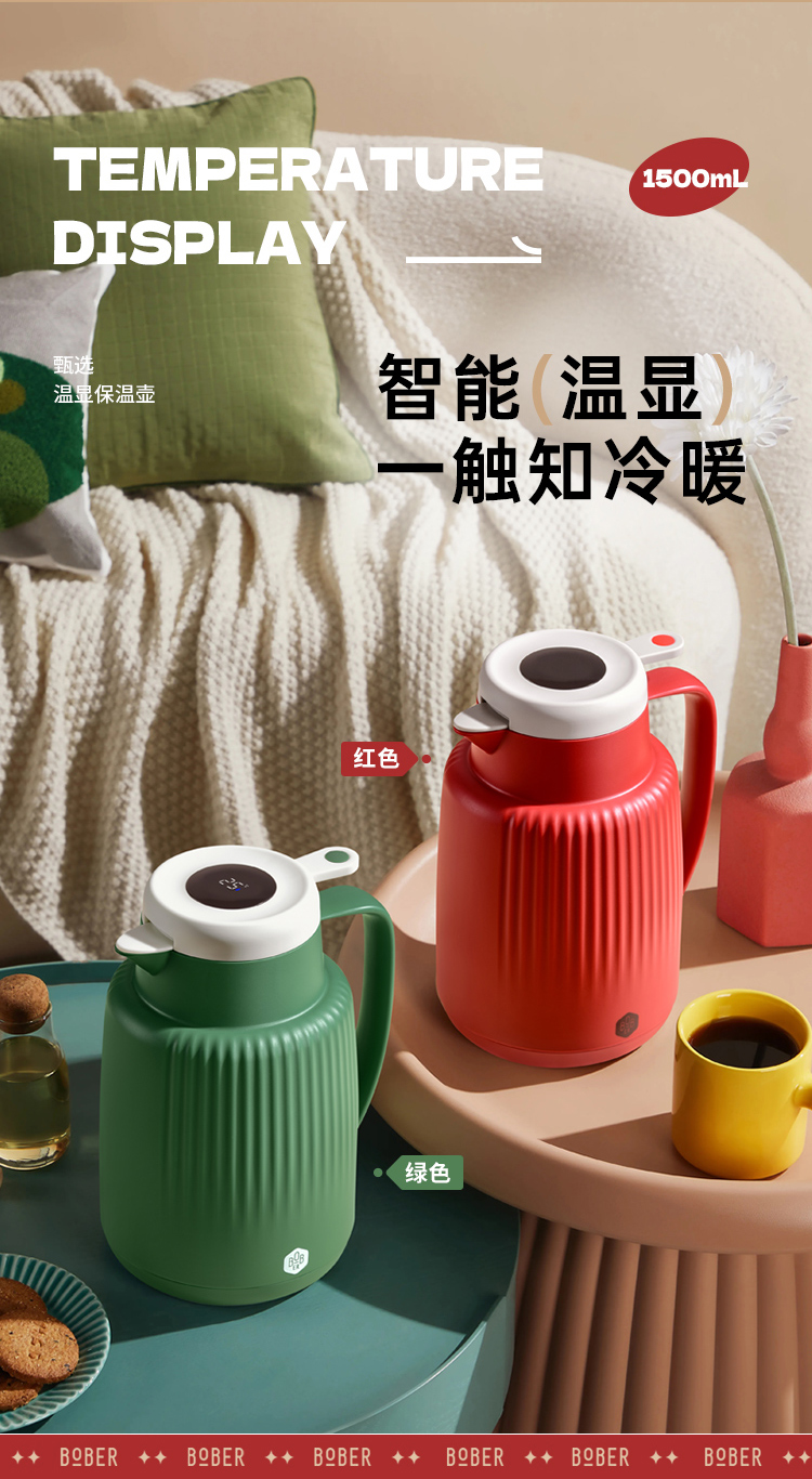 博堡 臻选温显保温壶 绿色/红色1500ml 10404BZXH-1500