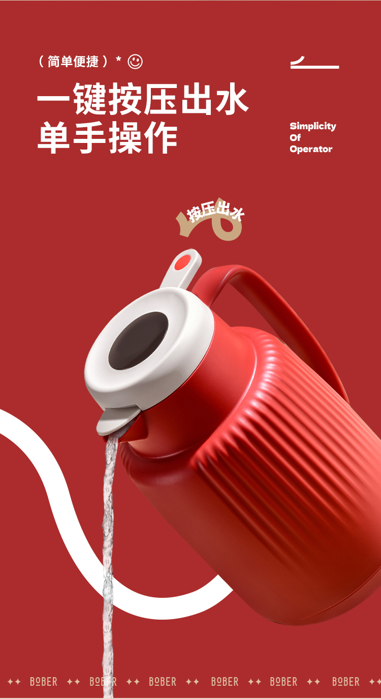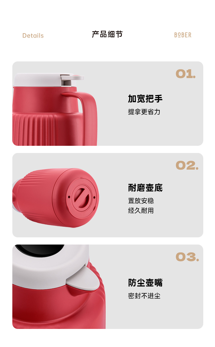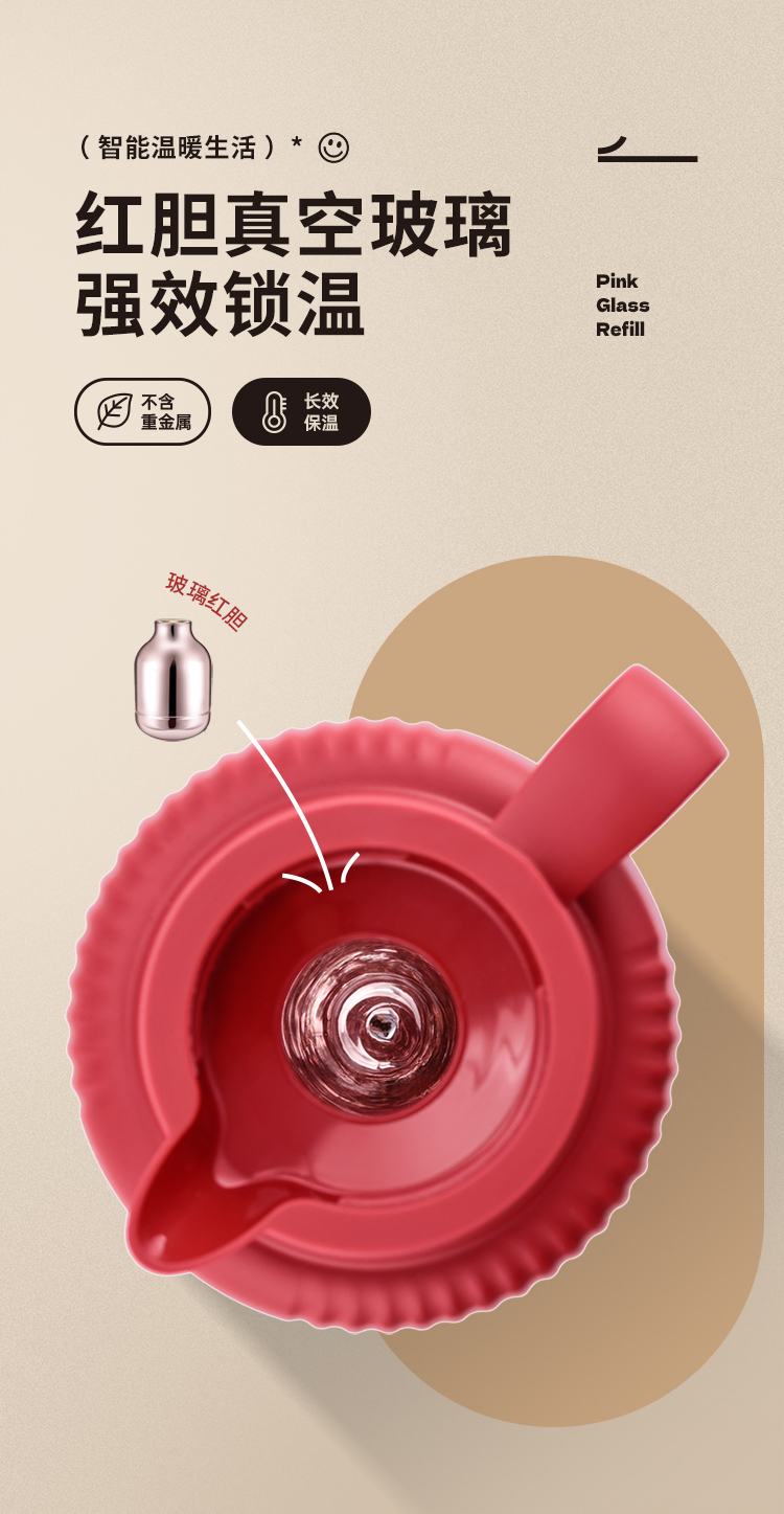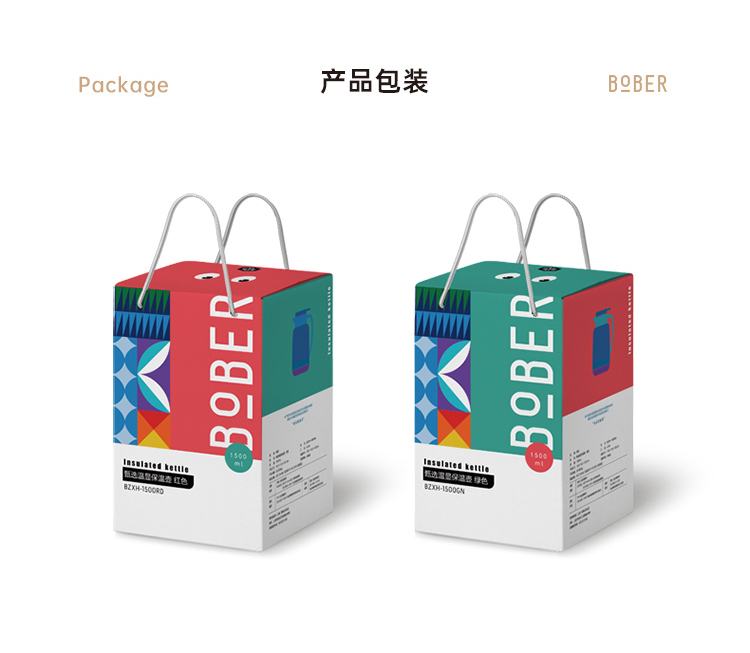 博堡 臻选温显保温壶 绿色/红色1500ml 10404BZXH-1500