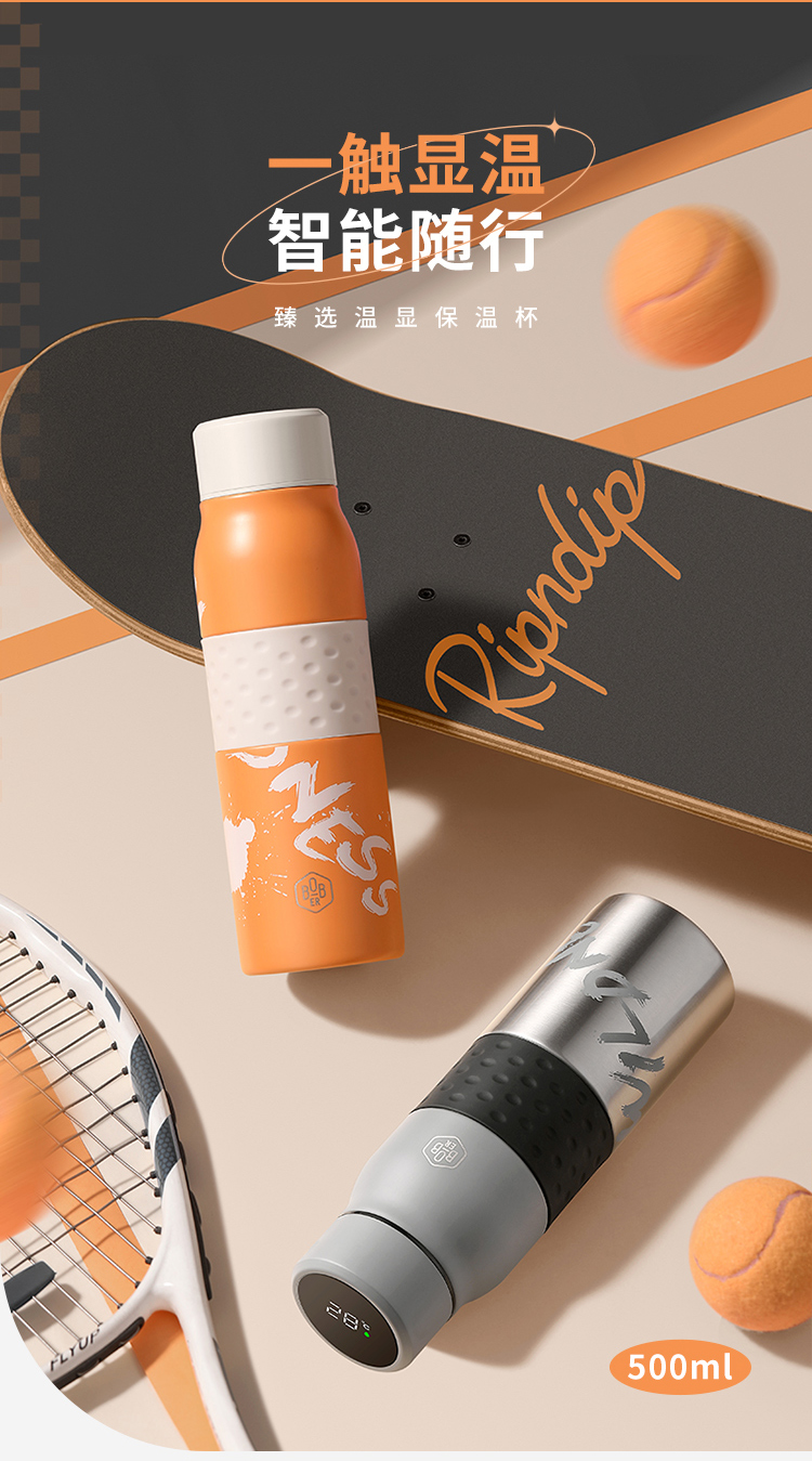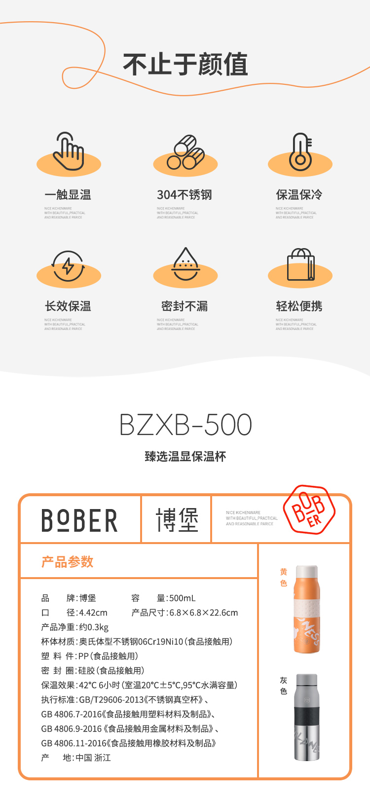 博堡 臻选温显保温杯 黄色/灰色500mL 10404BZXB-500