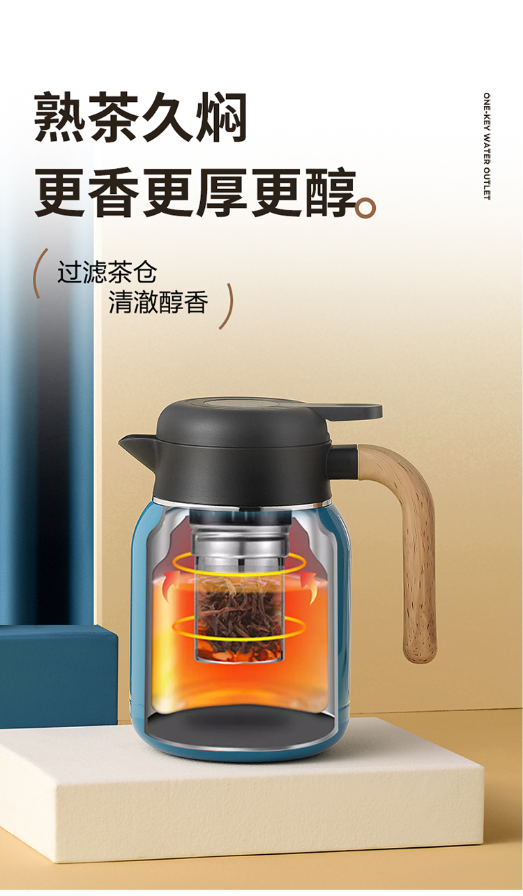 博堡BOBER醇享温显焖茶壶 蓝色900mL BCXH-900BL