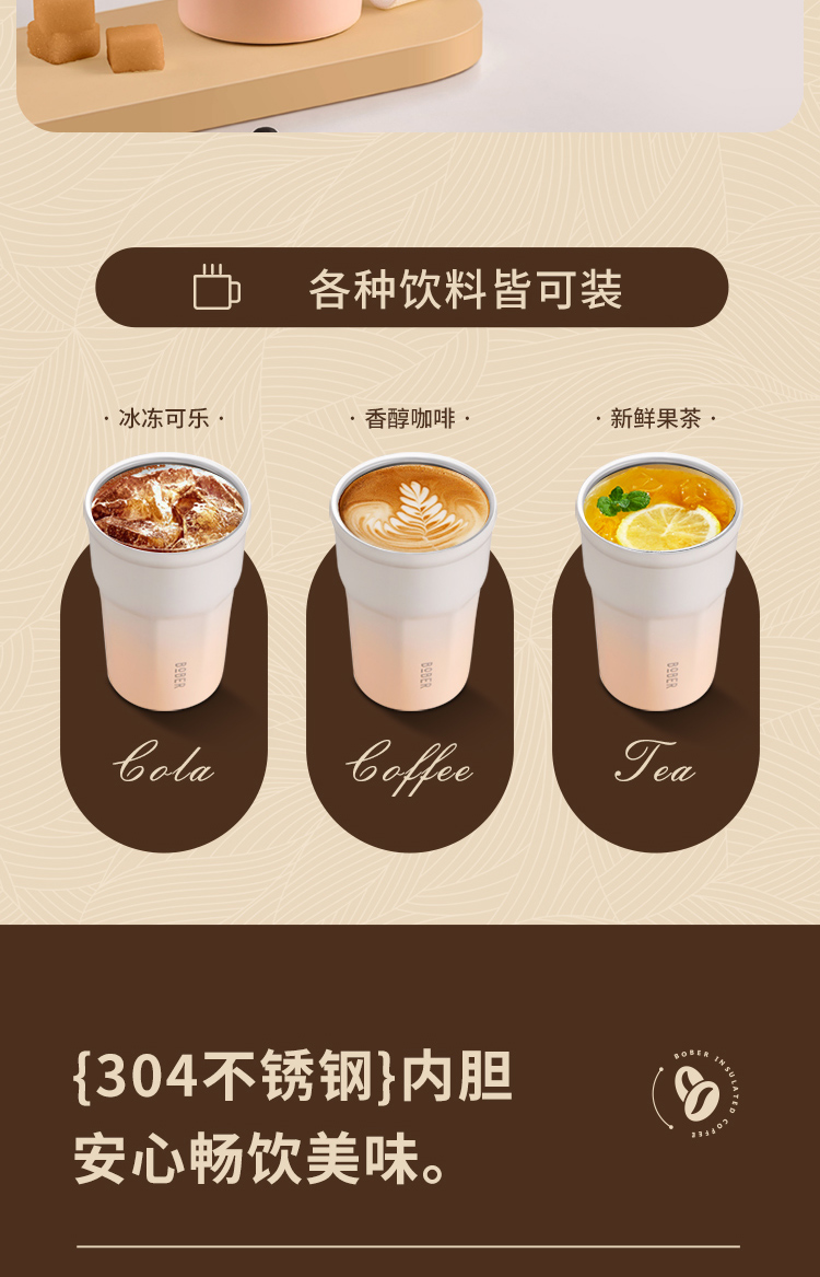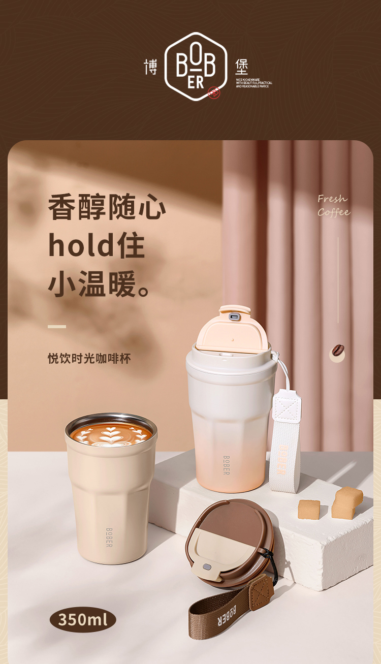 博堡 悦饮时光咖啡杯 渐变粉/咖色 350mL BYYB-350