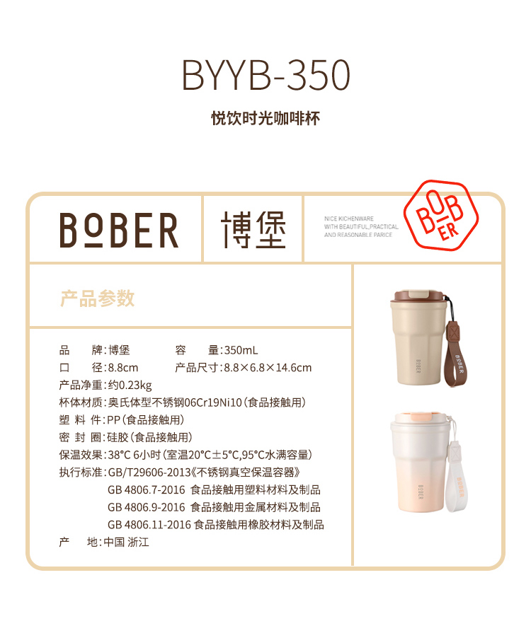 杯体材质:奥氏体型不锈钢06Cr19Ni10(食品接触用)