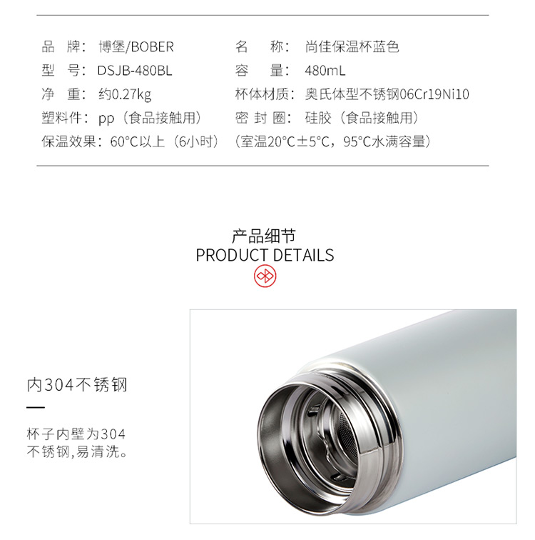 博堡 尚佳保温杯480ml 蓝色 DSJB-480BL