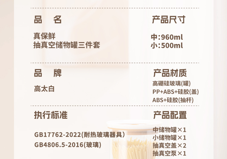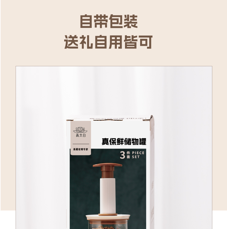 高太白真保鲜 · 抽真空储物罐3件套 GBXG004