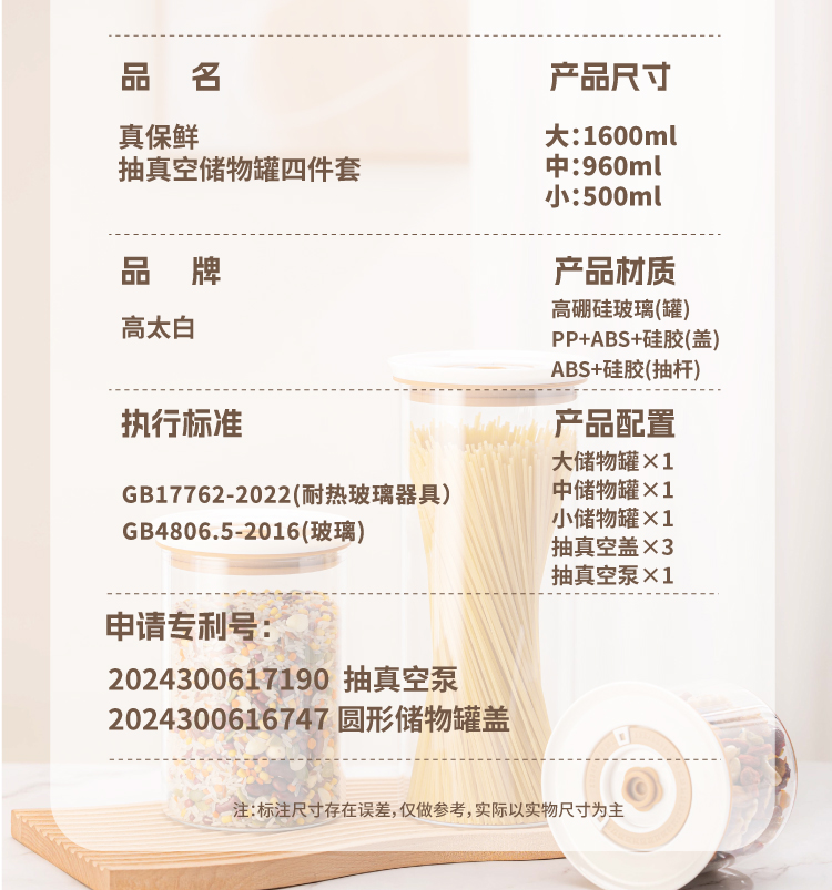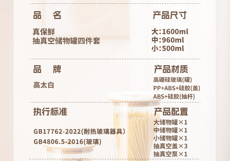 高太白真保鲜 · 抽真空储物罐4件套 GBXG005