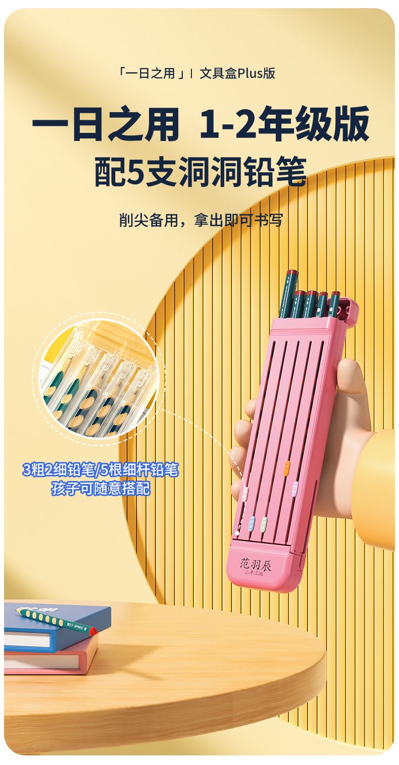 猫太子一日之用PLUS笔盒(5支细杆铅笔)