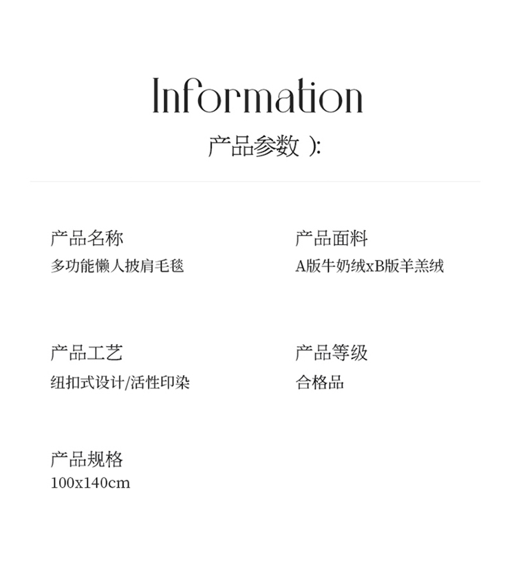 雅鹿多功能羊羔绒披肩毯 YLC2211 100*140