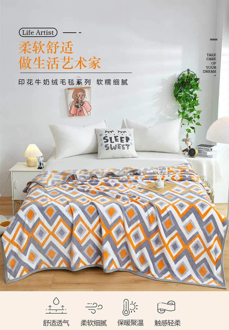 雅鹿印花牛奶绒毯 YLC2212 180*200cm