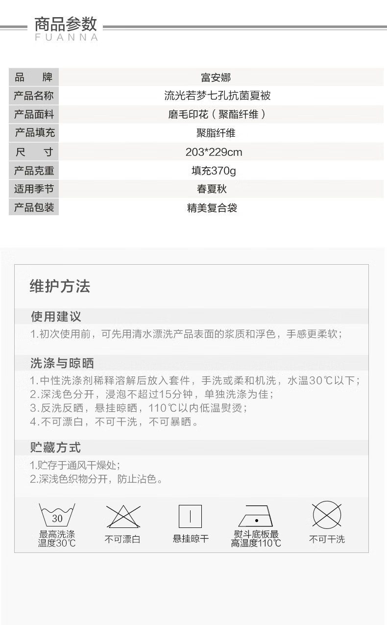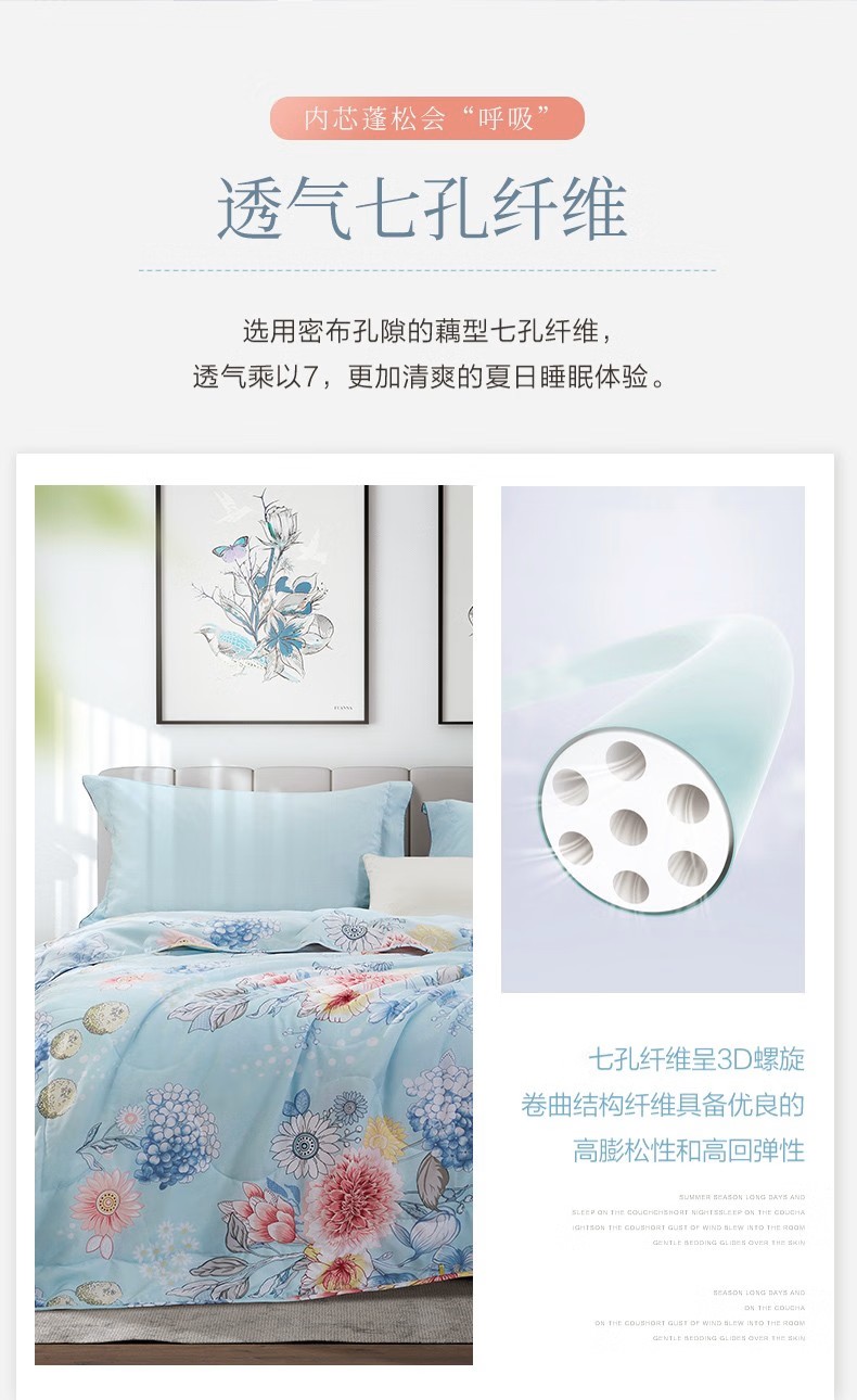 富安娜 七孔抗菌印花夏被-流光若梦 152*210cm(250g)