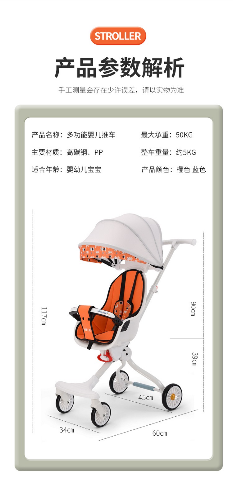 型号:DK-621 包装尺寸:46*30*60cm 商品规格: 60*34*90cm 商品净重:4.8kg 毛重:5.8kg 适合年龄:6个月-6岁 承重:30公斤 产品材质:加粗高碳钢车架