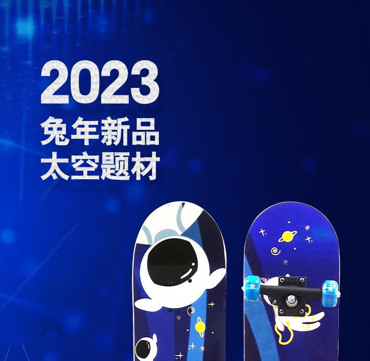 双翘滑板可练习空中翻转跳跃等动作、易操作,配有七层中国枫木板材紧固、安全并且使用寿命更长。闪光PU静音轮硬度高直径小,起跳落地回弹更稳。