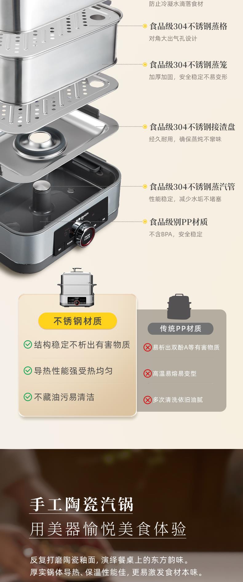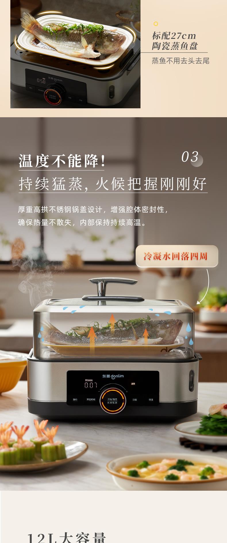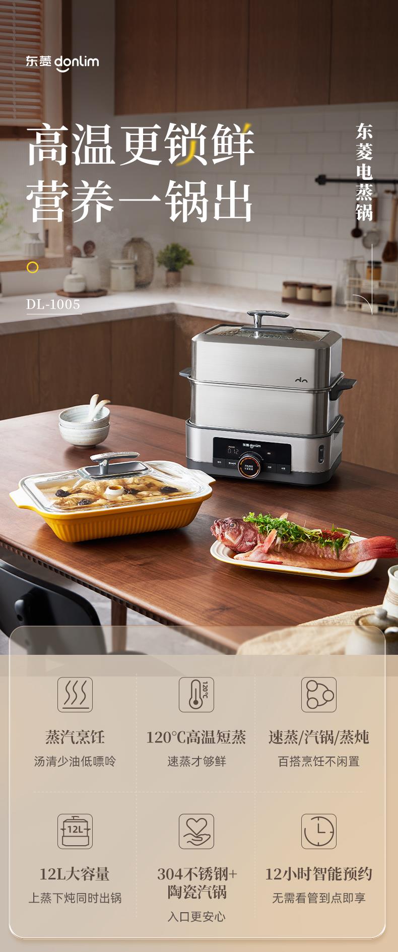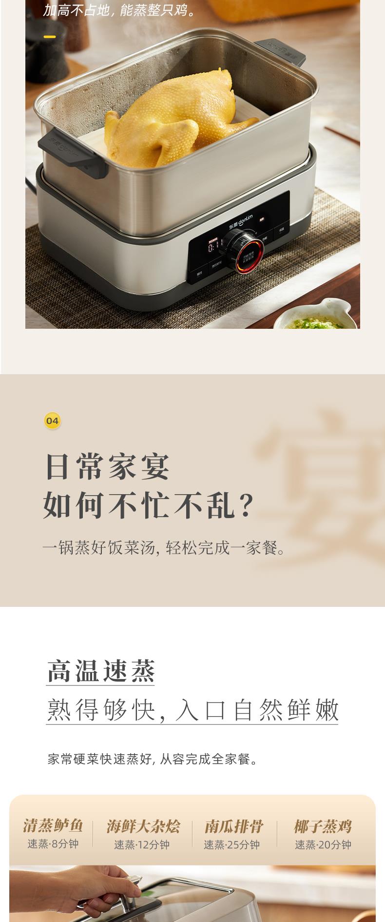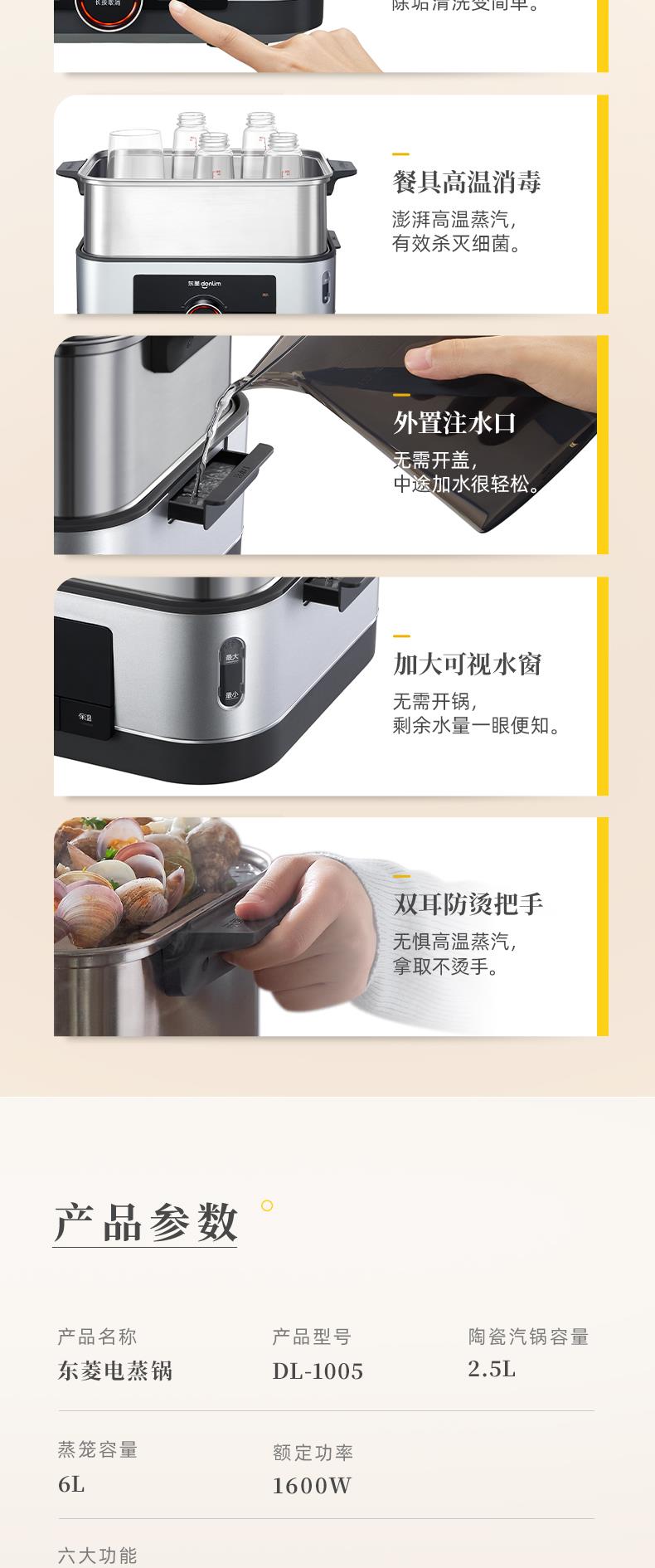 东菱电蒸锅炖蒸煮一体多功能锅 电蒸锅 DL-1005 钛金灰