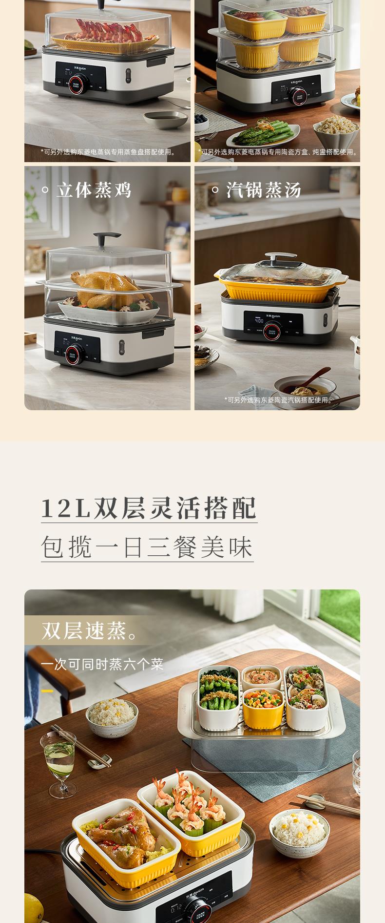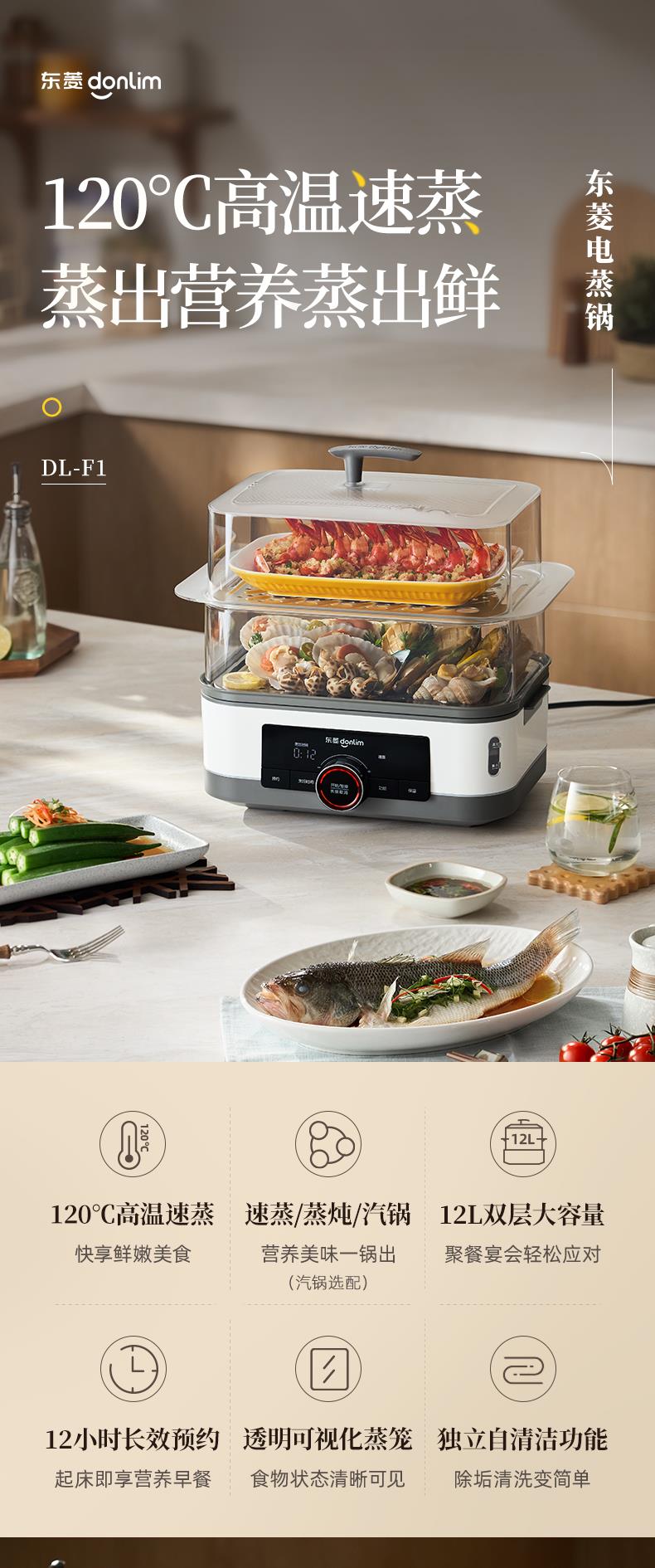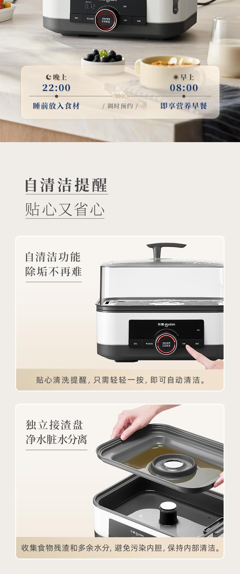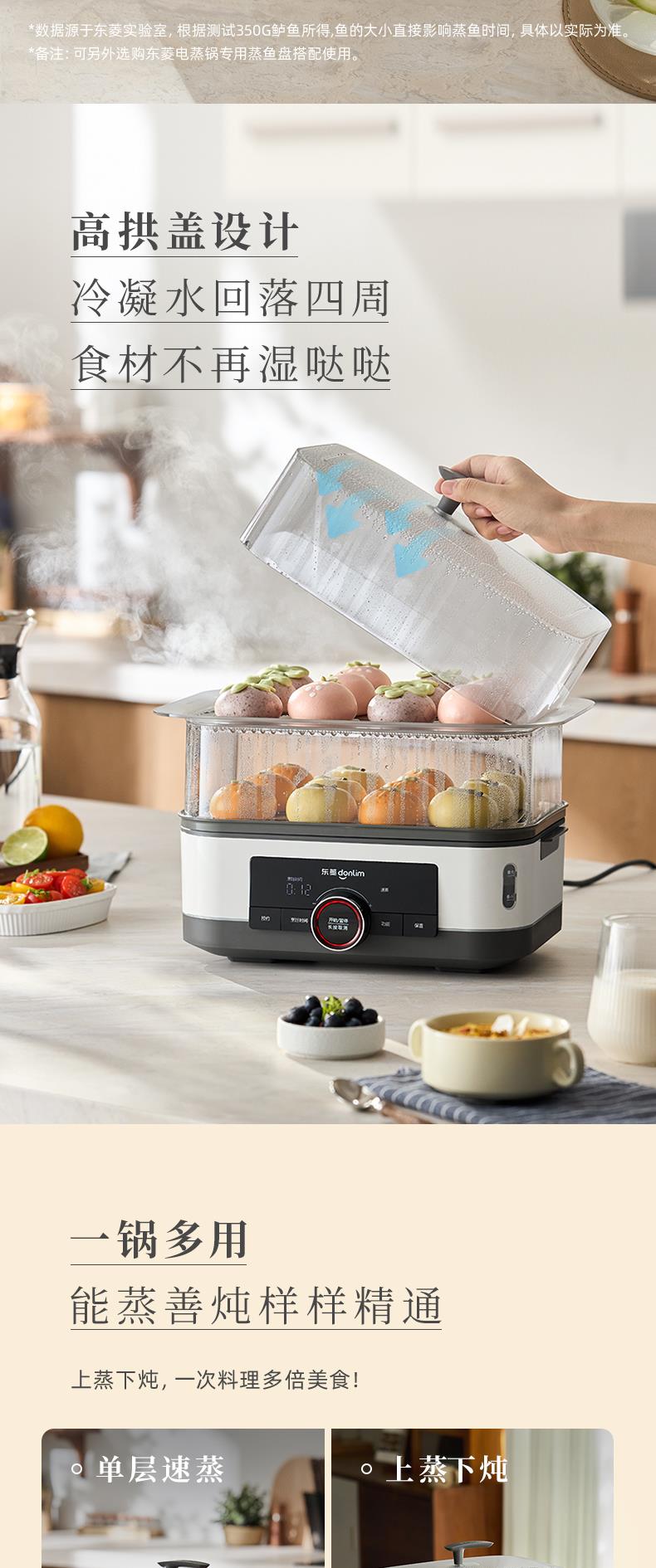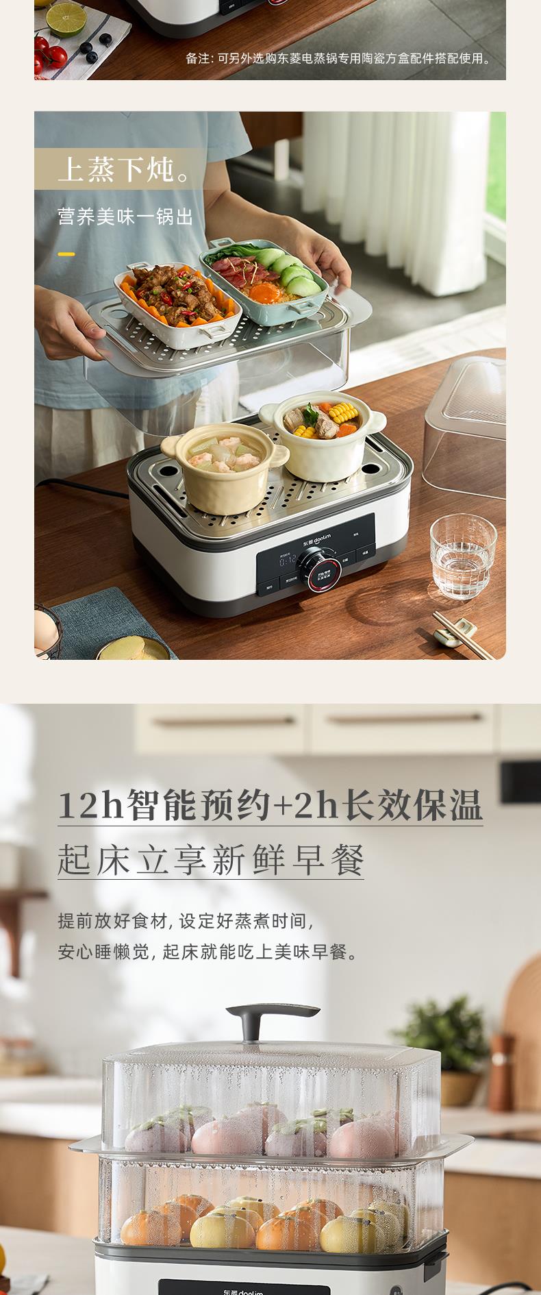 东菱多功能蒸锅 蒸炖煮一体锅家用大容量可视电蒸锅 DL-F1 棉云白
