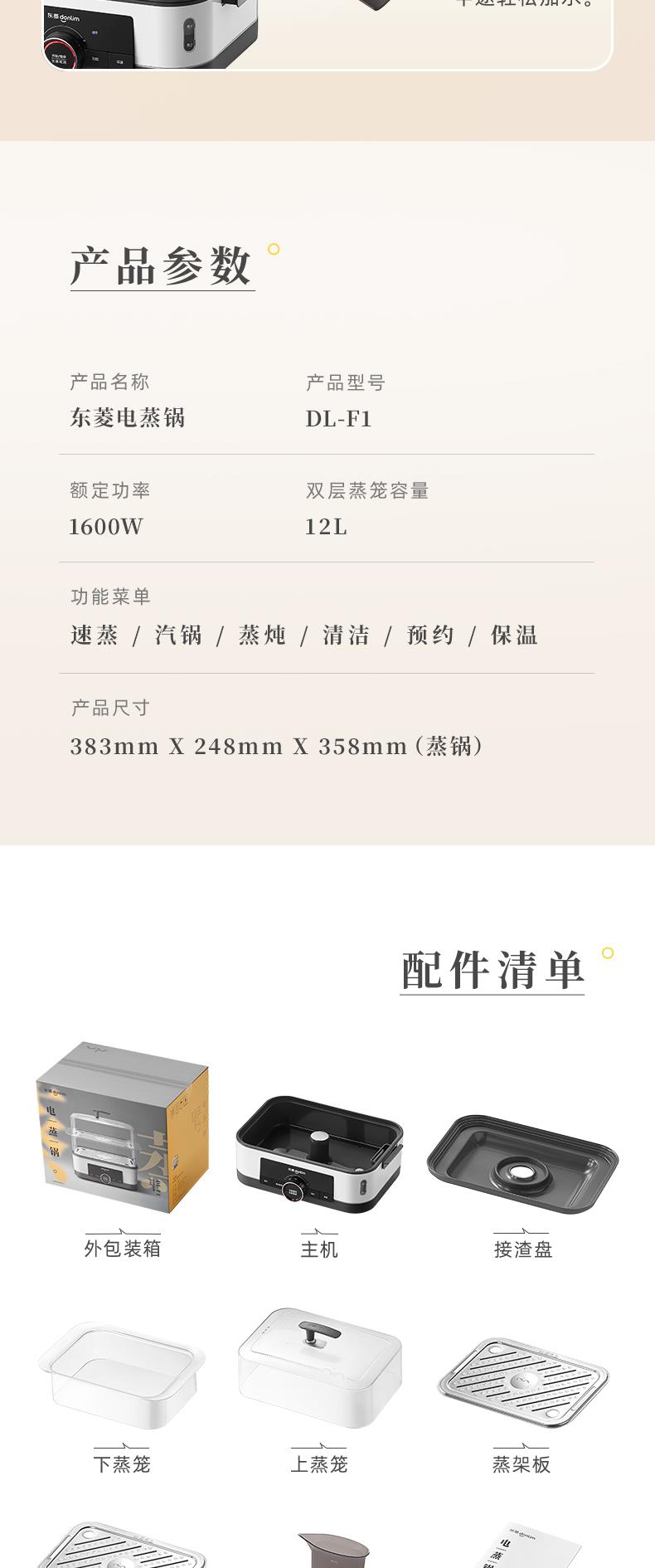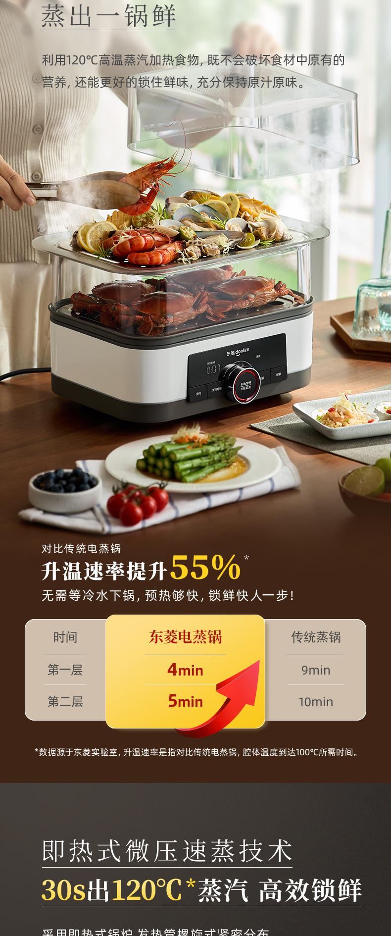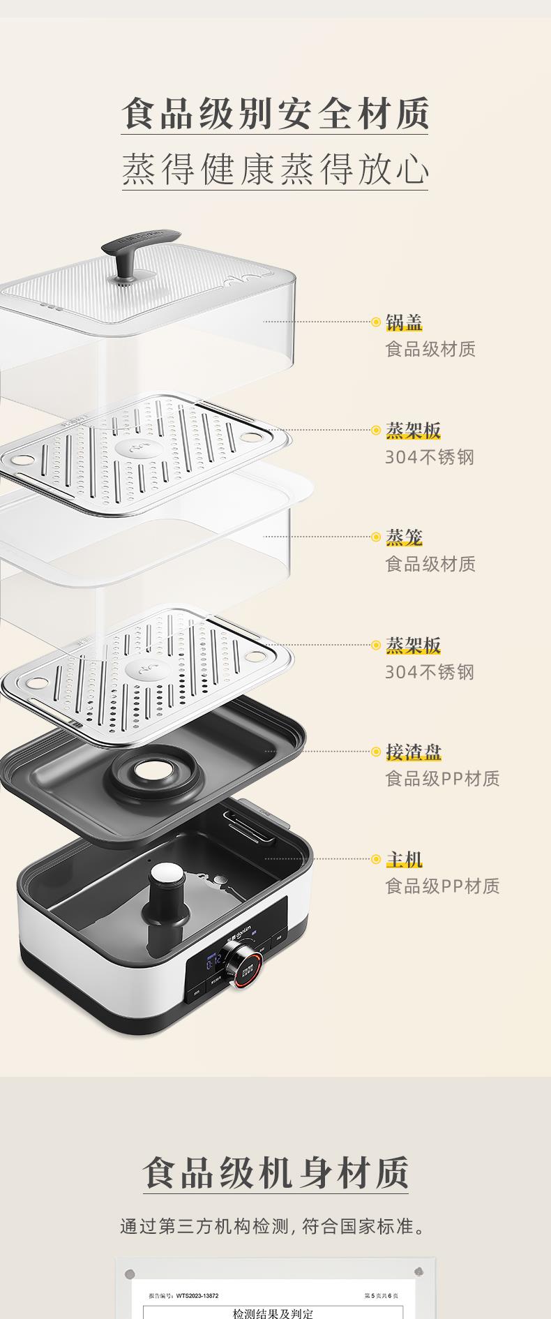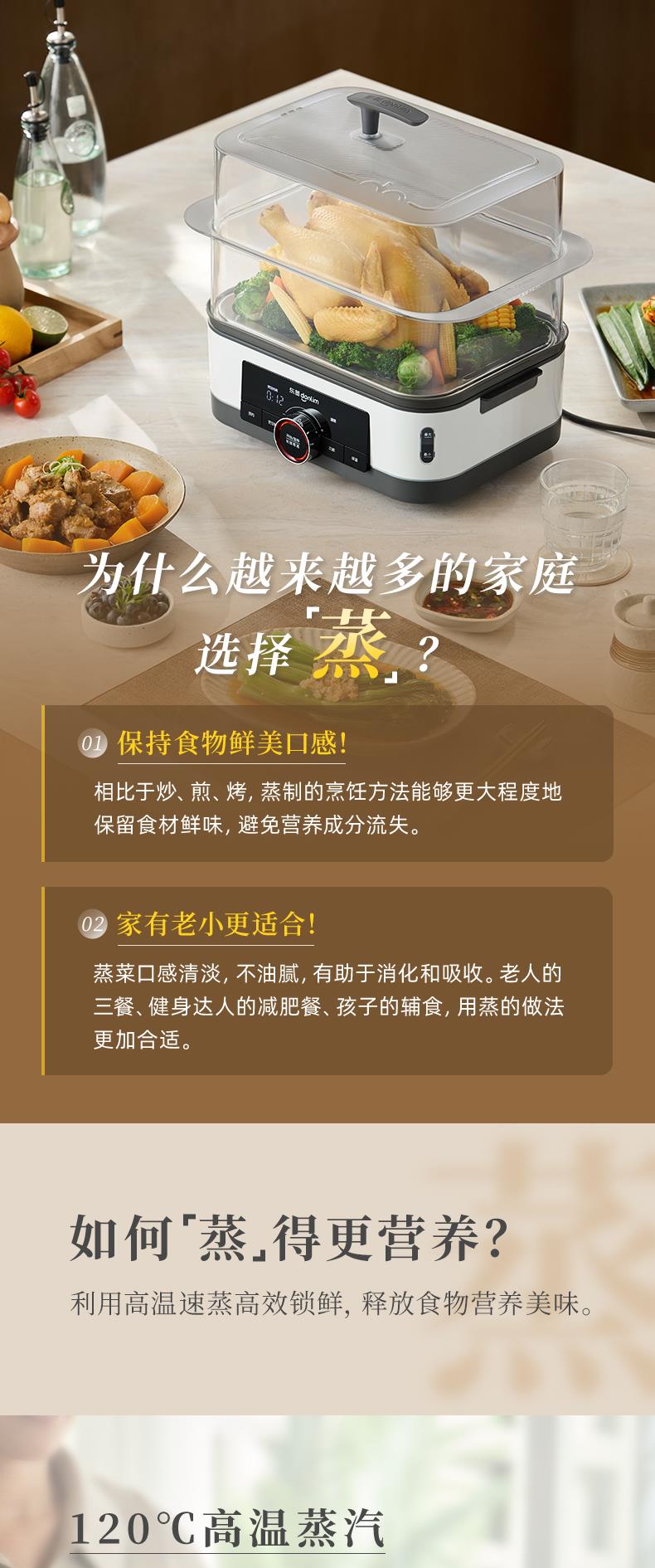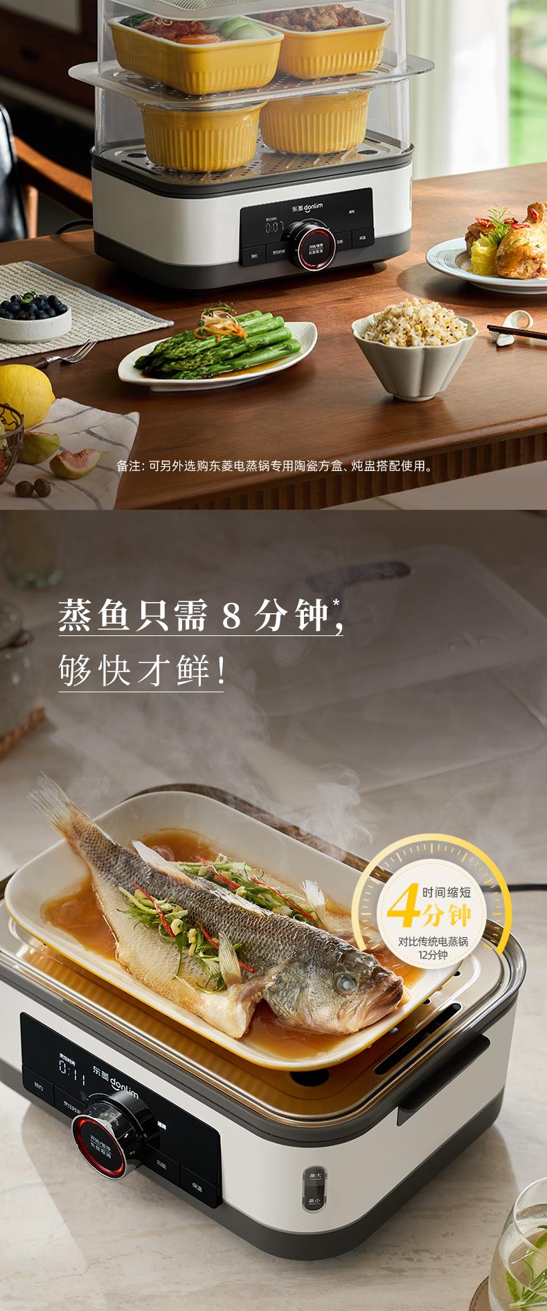 东菱多功能蒸锅 蒸炖煮一体锅家用大容量可视电蒸锅 DL-F1 棉云白