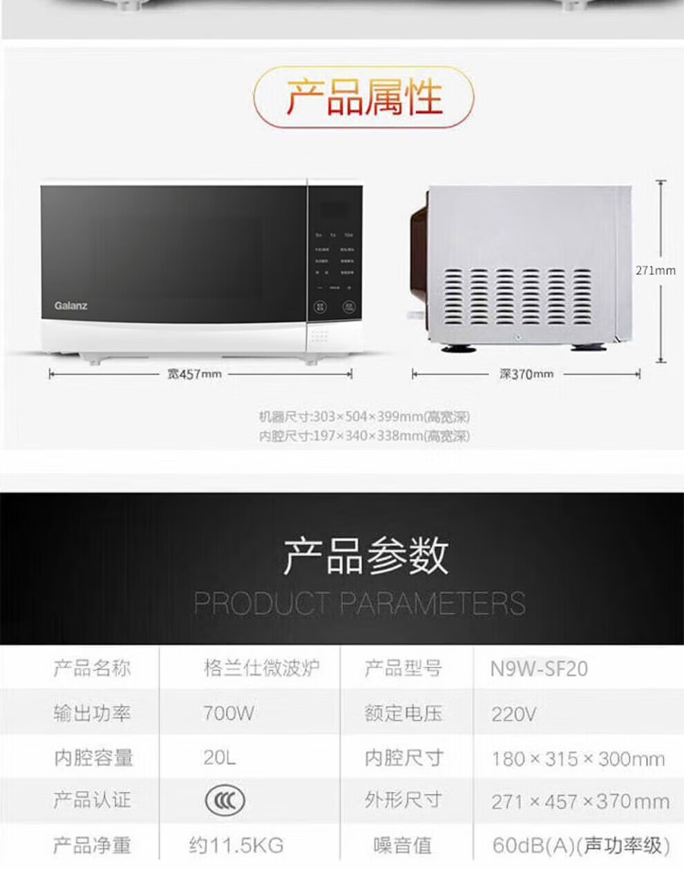 格兰仕微波炉N9W-SF20 20升