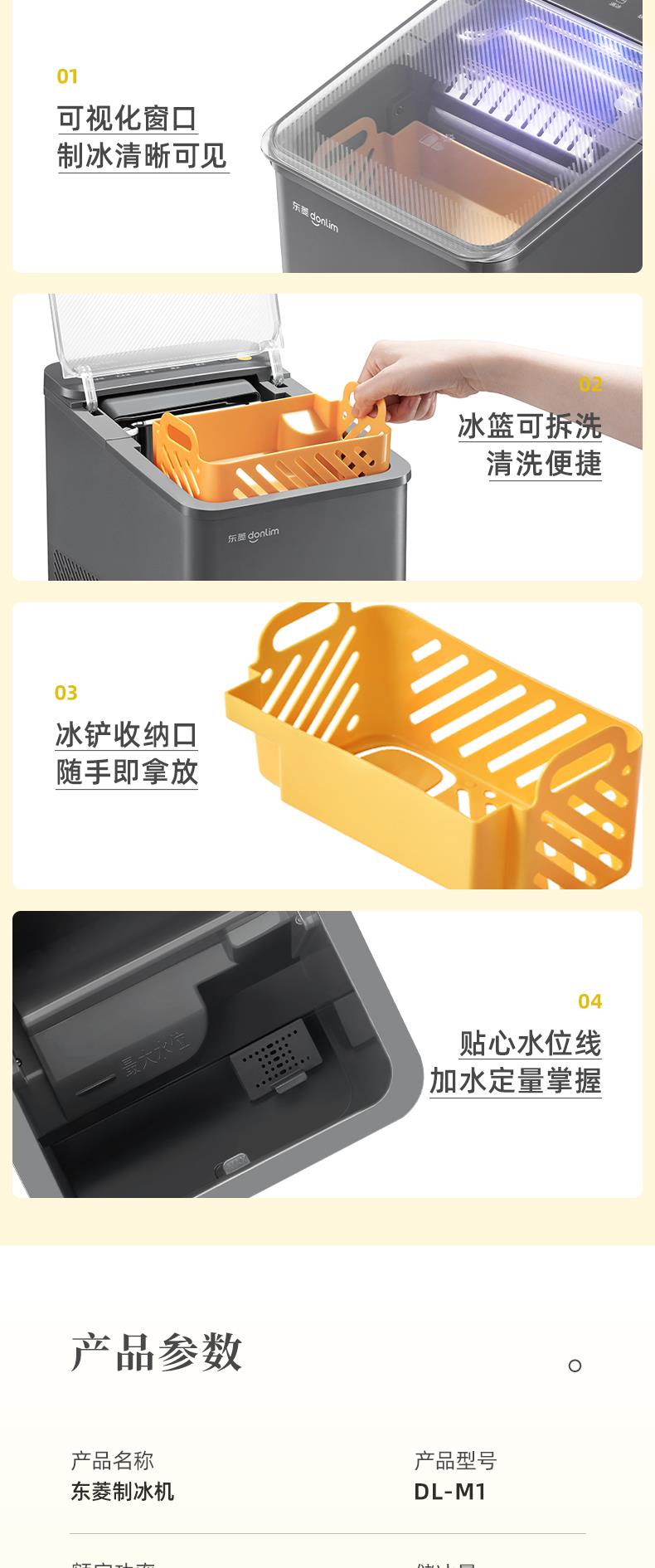 东菱制冰机 家用冰块机小型宿舍迷你造冰机 DL-M1 钛金灰