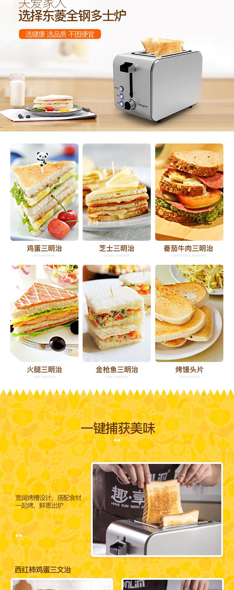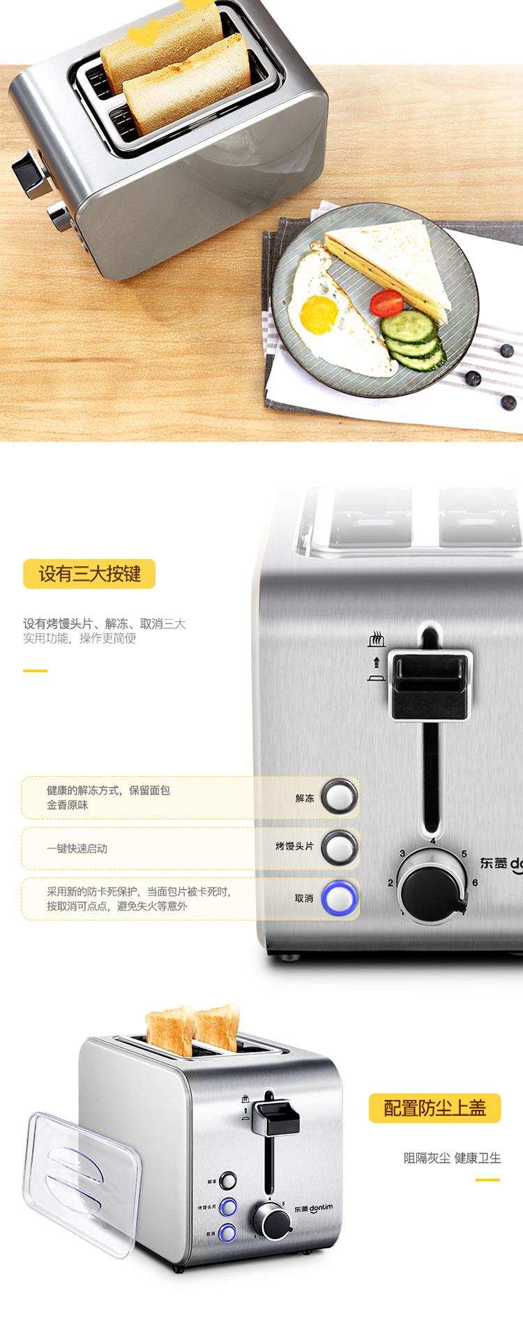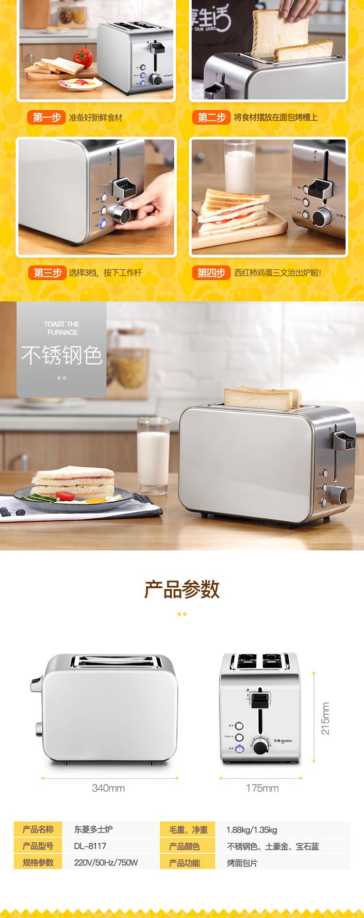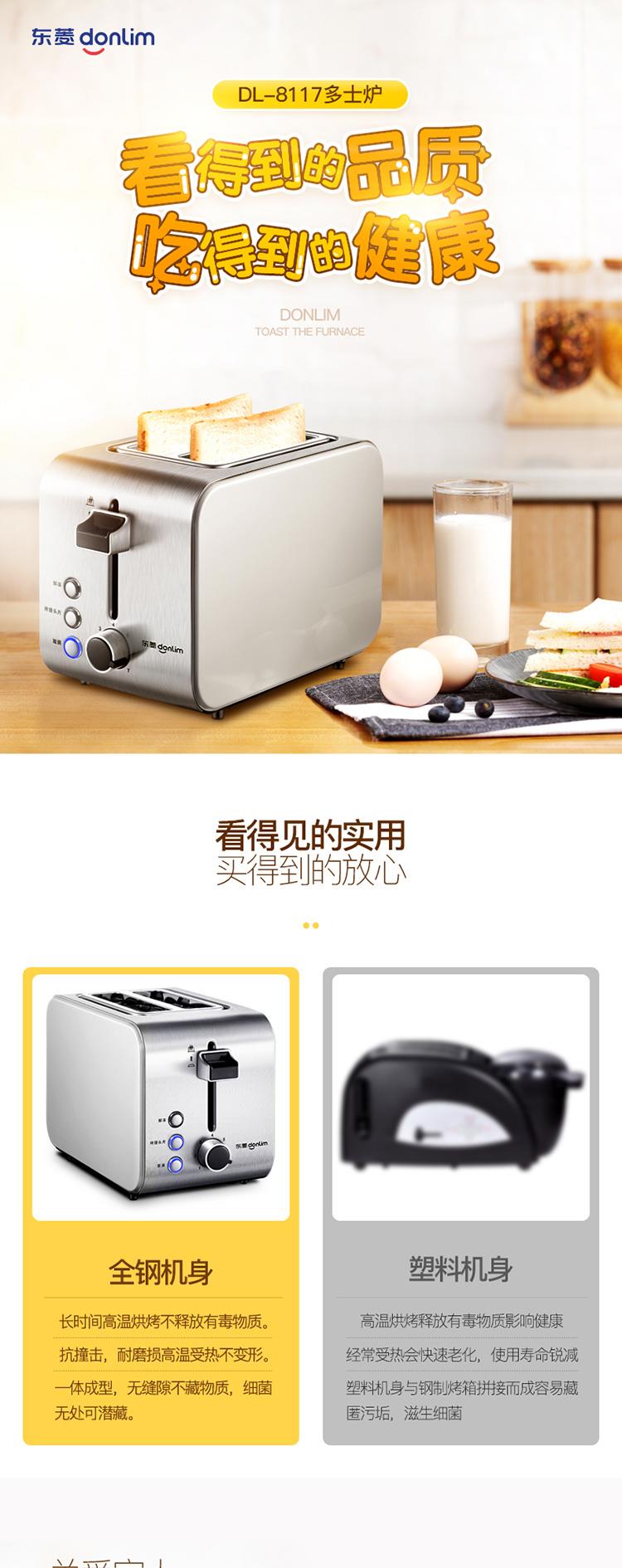 东菱全不锈钢烤机身早餐机 多士炉 DL-8117 不锈钢色