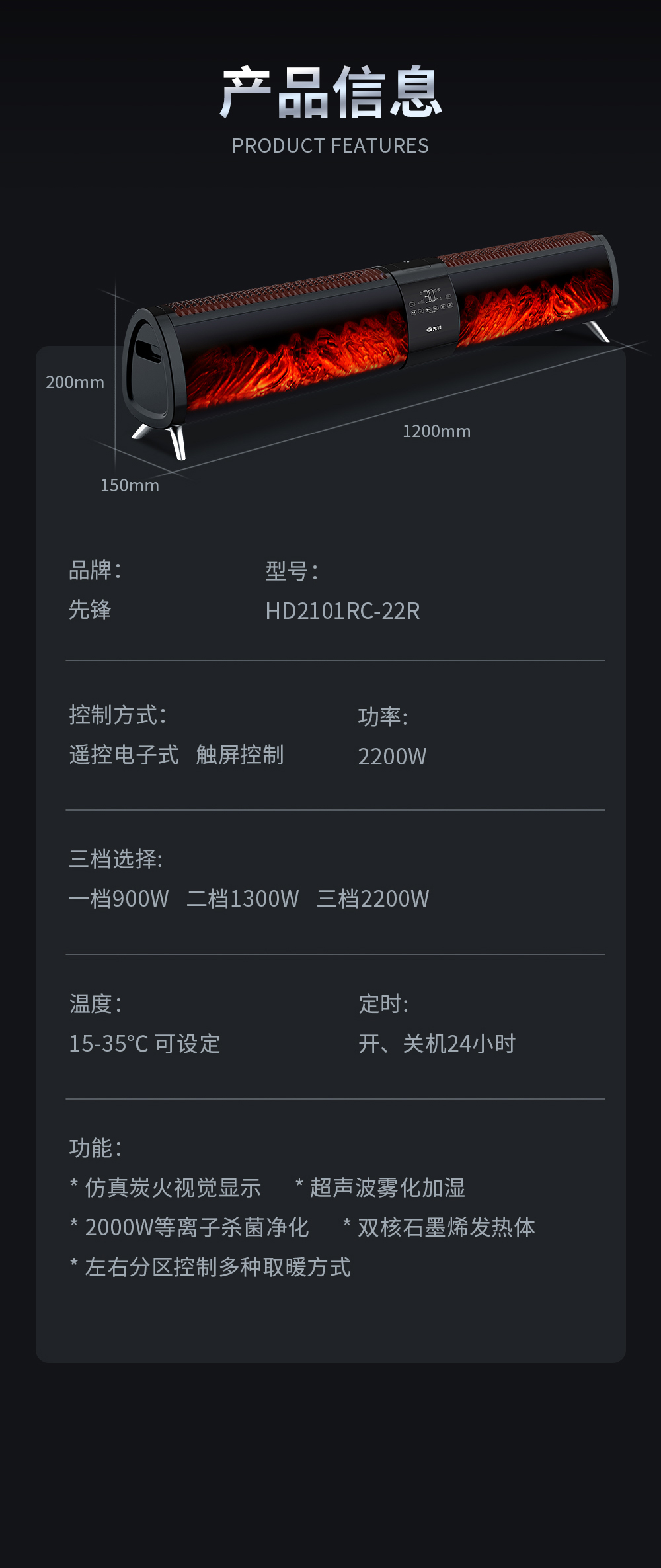 先锋炭火踢脚线HD2101RC-22R(DF2101R)(遥控电子式 触屏控制)